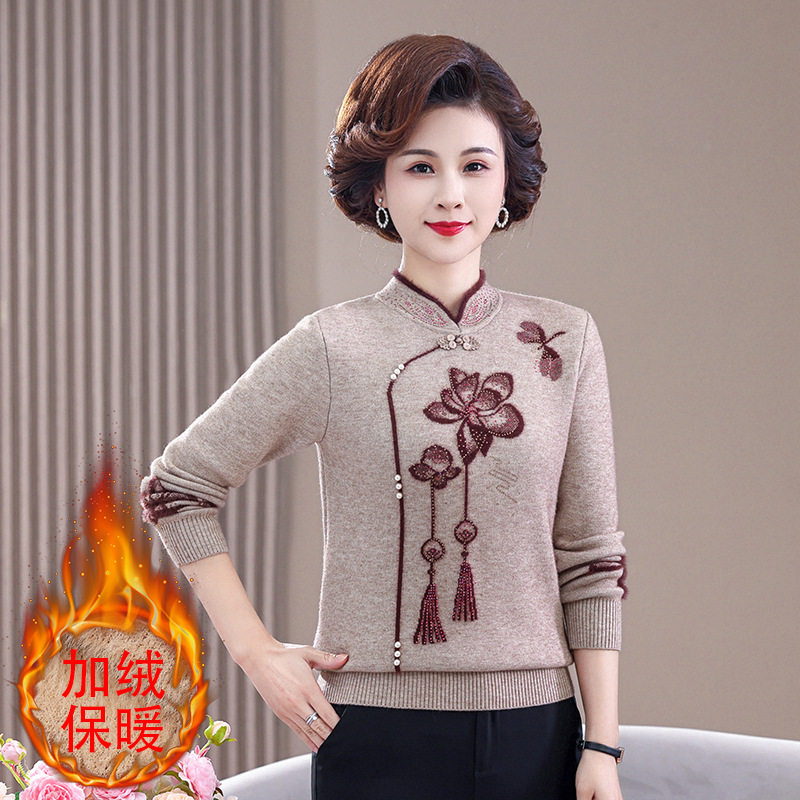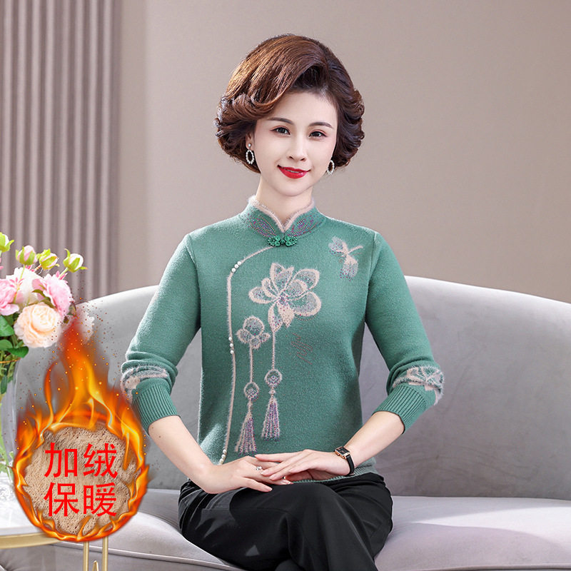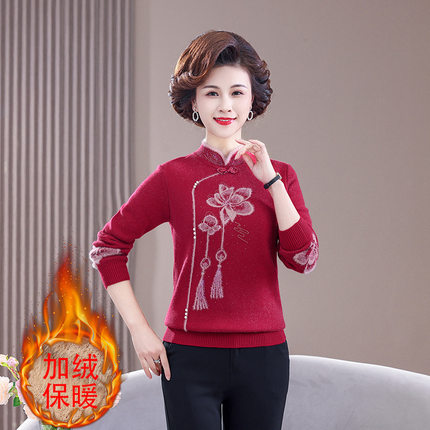 【559】国风水貂绒妈妈装毛衣加绒中老年打底加厚女士一体绒上衣