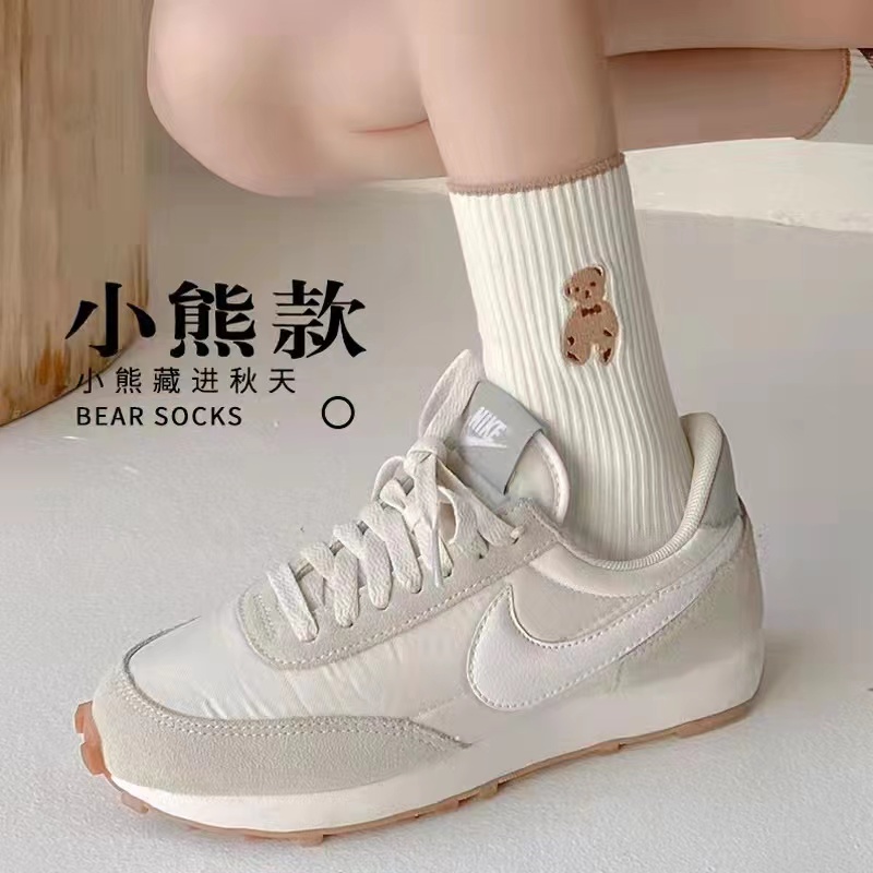 【4双装】秋冬学生小熊袜子女韩版中筒袜ins潮百搭堆堆袜长筒