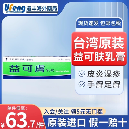 台湾原装益可肤乳膏皮炎软膏湿疹皮炎真菌感染手足癣皮癣念珠止痒