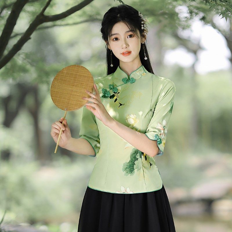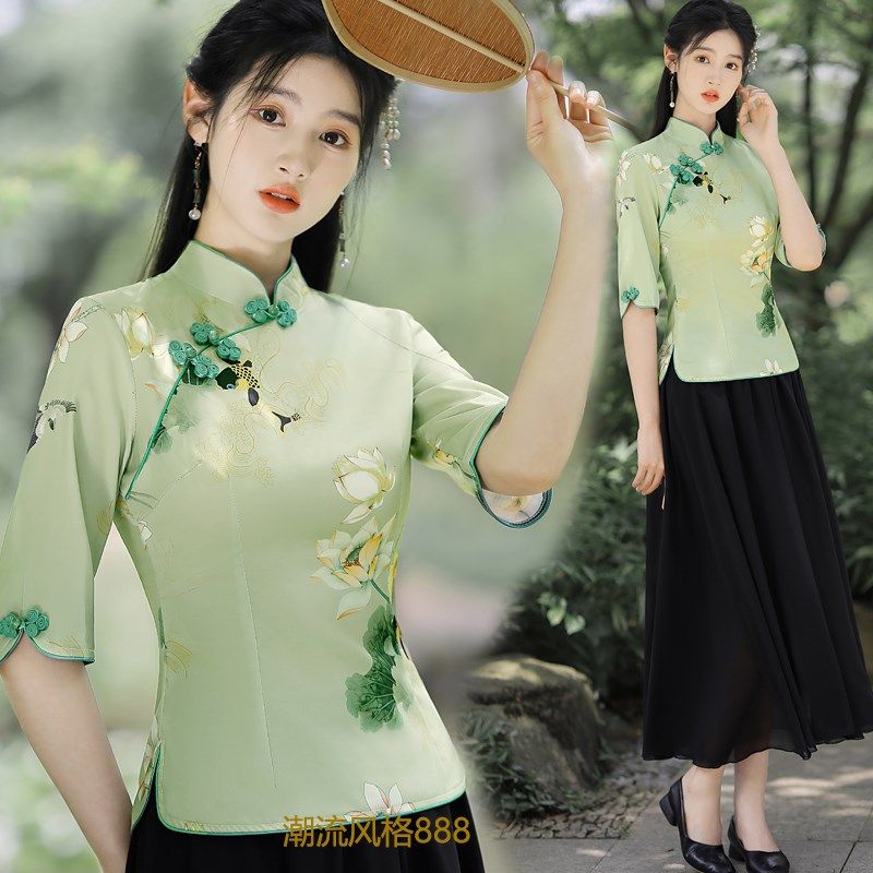 改良旗袍两件套连衣裙少女夏装2024新款初中高中学生民国风古装裙