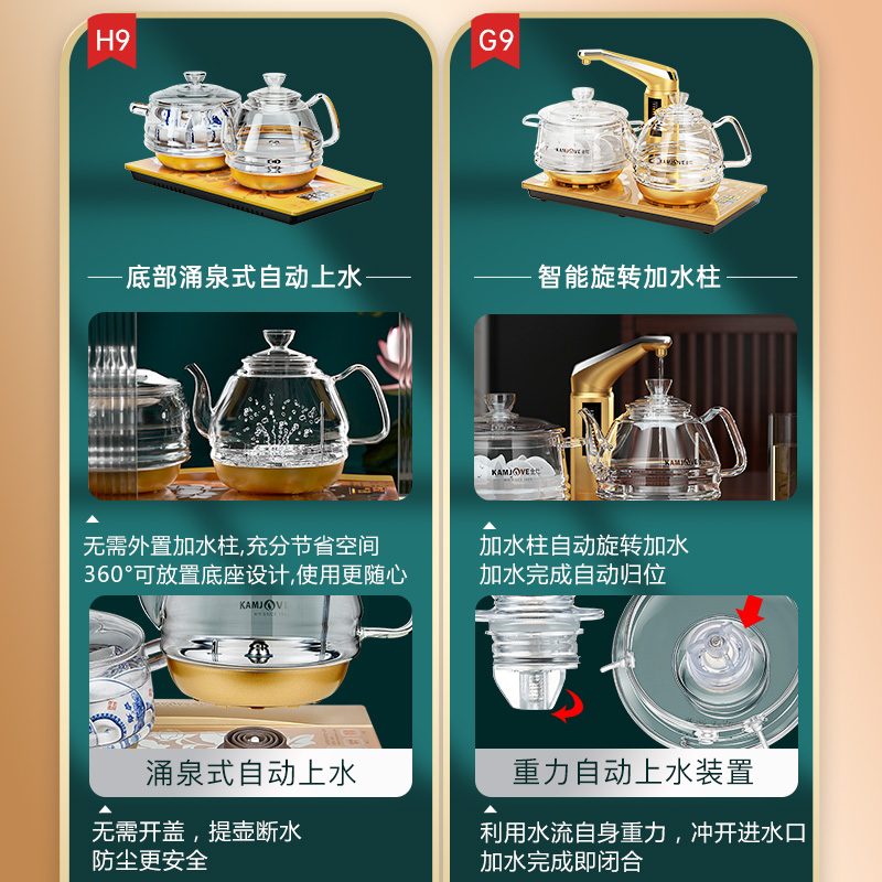 KAMJOVE/金灶 H9全自动底部上水电热水壶茶台一体家用茶桌烧水壶