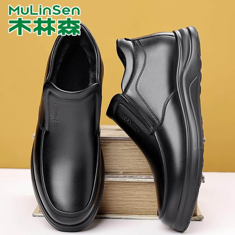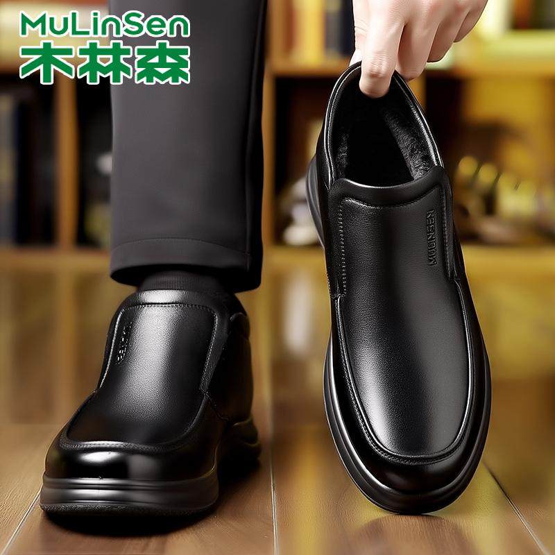 木林森棉鞋男冬季新款加绒保暖加厚休闲高帮皮鞋真皮中年爸爸棉鞋