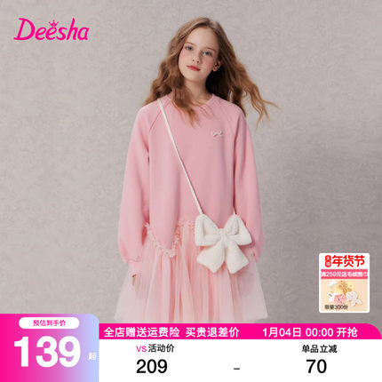 笛莎童装女童连衣裙2025秋冬季女大童儿童加绒加厚公主网纱裙子