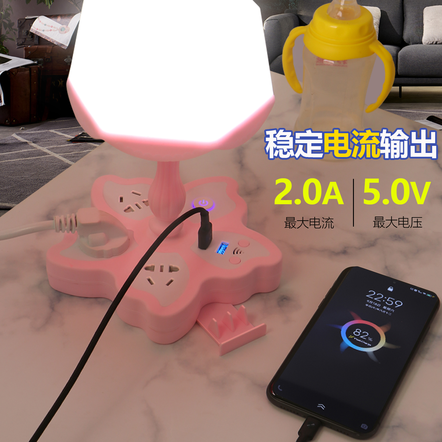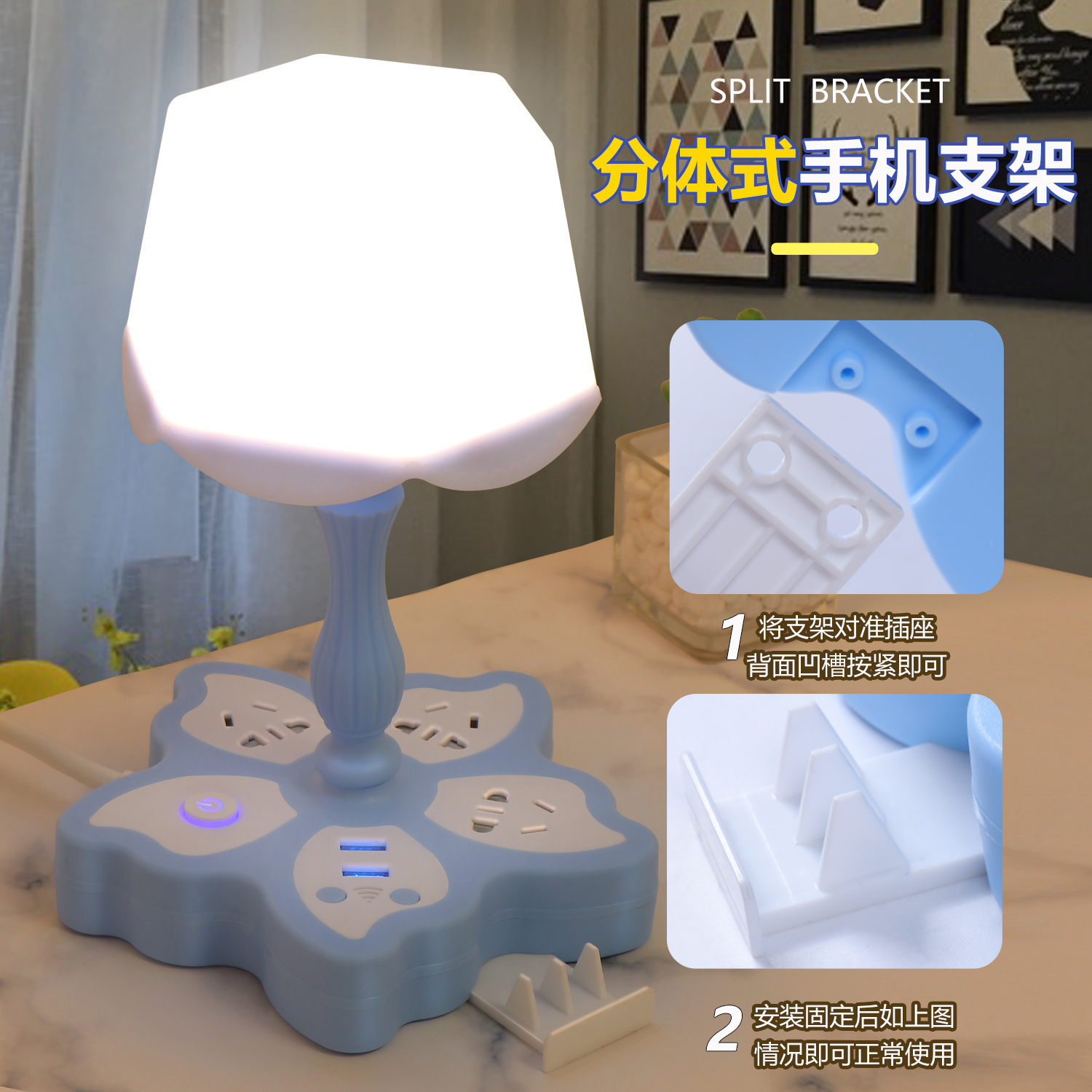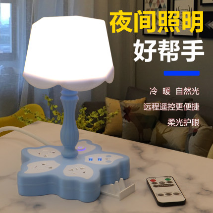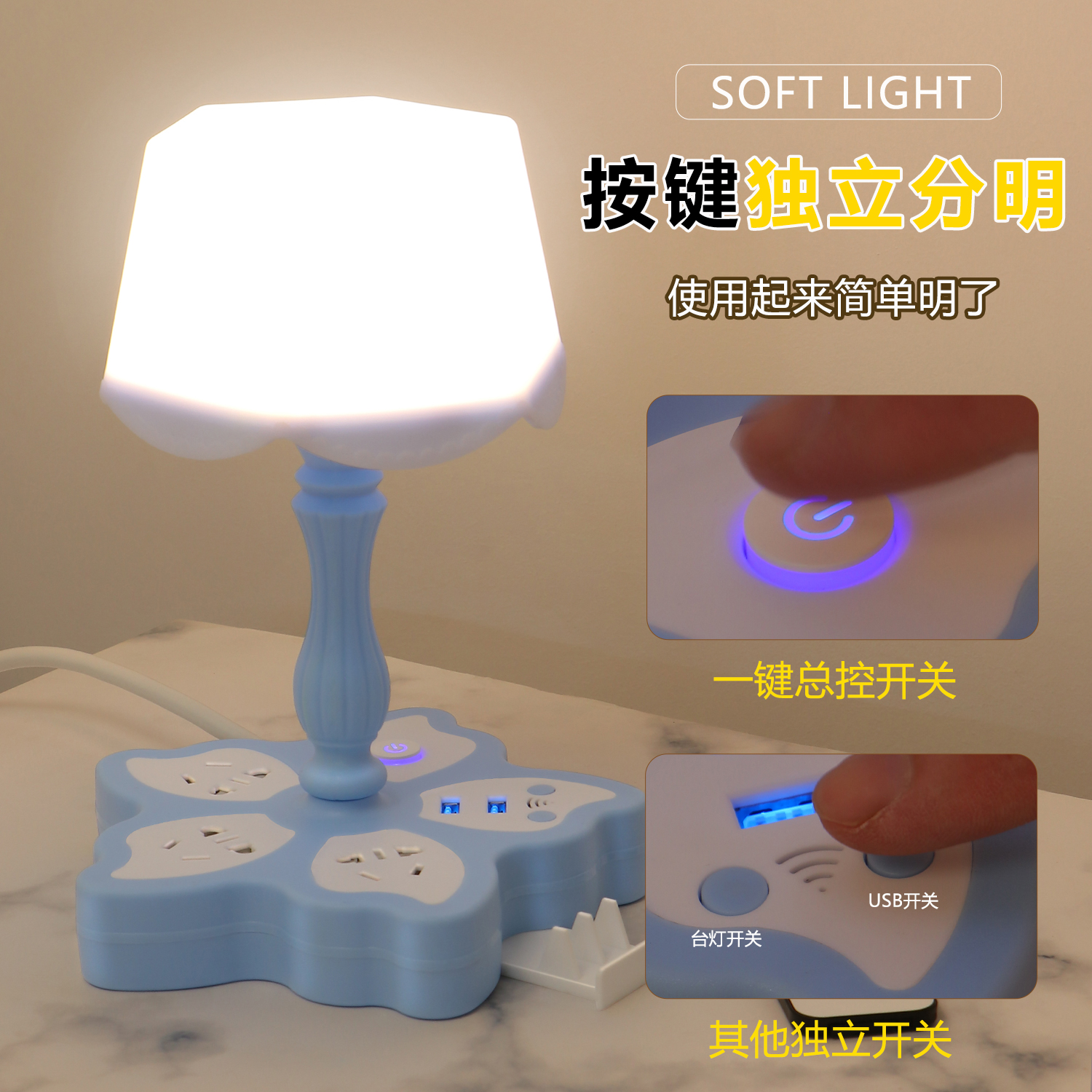 新款多功能台灯带插座LED护眼小夜灯卧室床头排插办公插座多孔USB