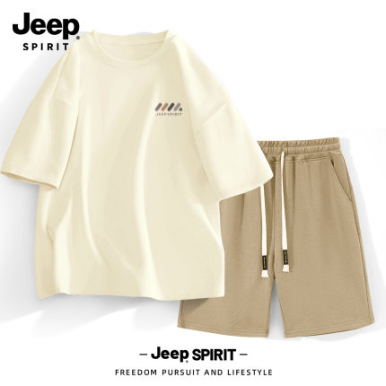 Jeep吉普套装男2025新款纯棉短袖t恤男装休闲男生五分裤短裤夏装
