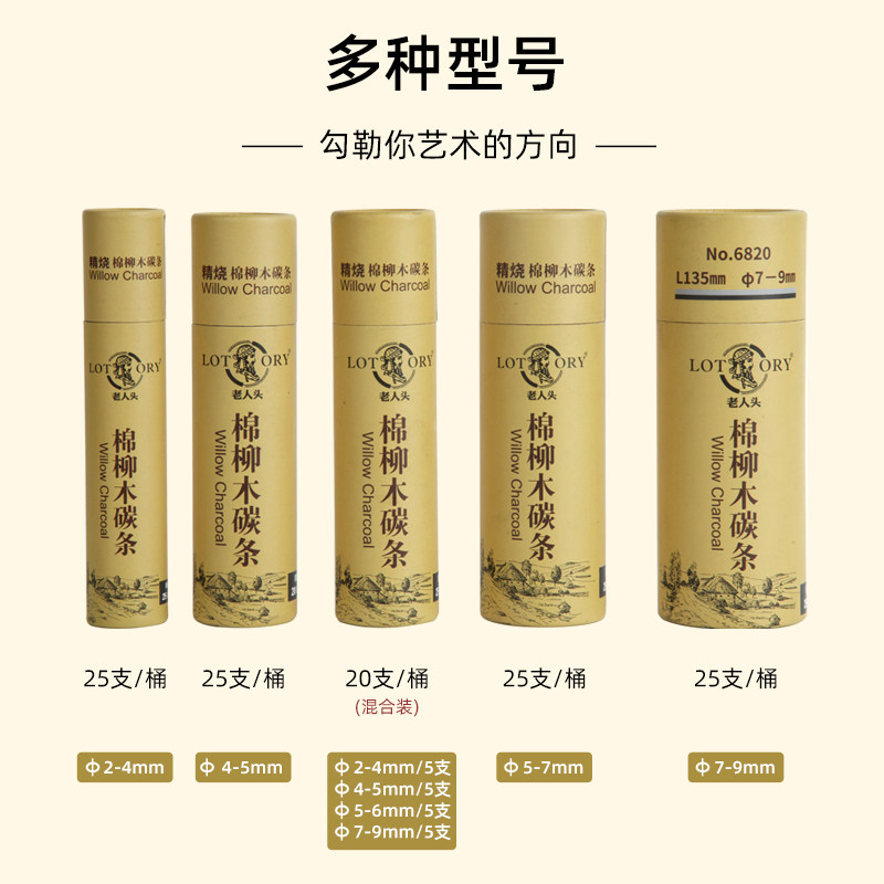 老人头碳条木炭条美术生专用棉柳炭条素描柳条炭笔国画炭条画画速写绘画铅碳笔炭棒碳棒炭精条炭画棒特浓写生