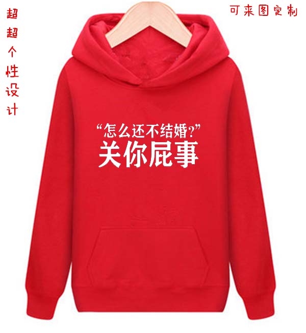 怎么还不结婚关你屁事个性恶搞新年连帽卫衣文字周边长袖秋冬装