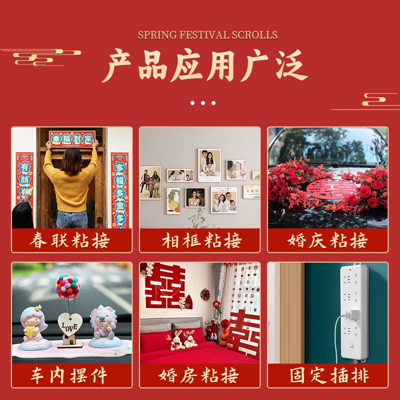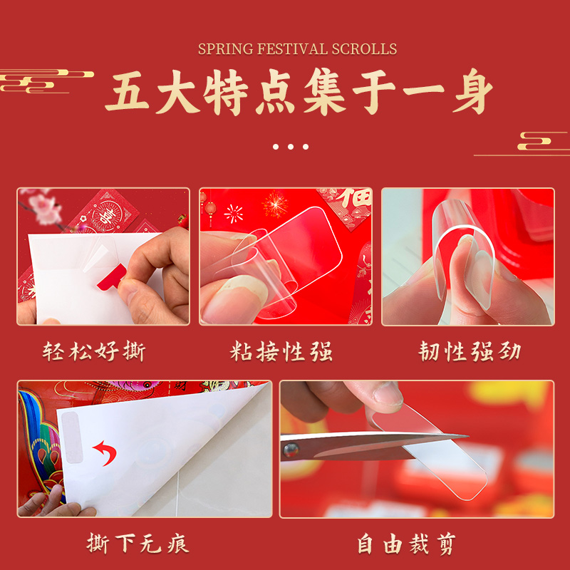 新年粘对联无痕贴多用途墙贴不留痕贴喜字春联窗花专用神器透明高粘度防水强力固定纳米双面胶贴片多功能胶带