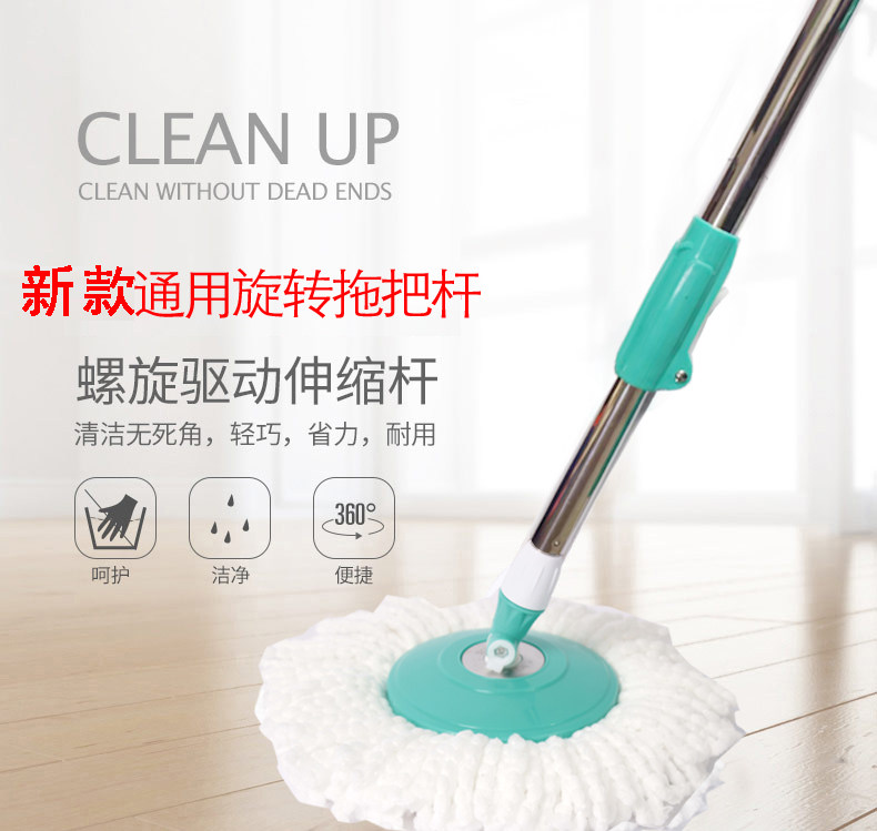 通用妙洁旋转拖把杆手压拖把杆自动甩水拖布杆不锈钢拖头替换墩布