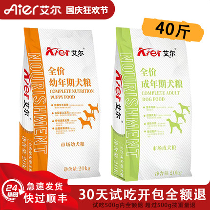 艾尔狗粮40斤牛肉味金毛哈士奇萨摩德牧阿拉斯加古牧狗粮20kg公斤