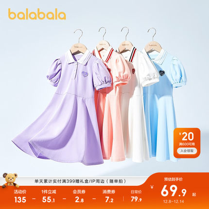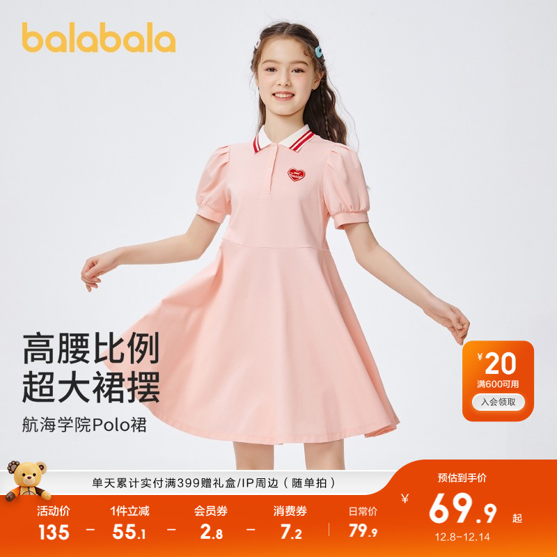 巴拉巴拉女童春夏装儿童连衣裙中大童学院风撞色洋气甜美裙子潮酷