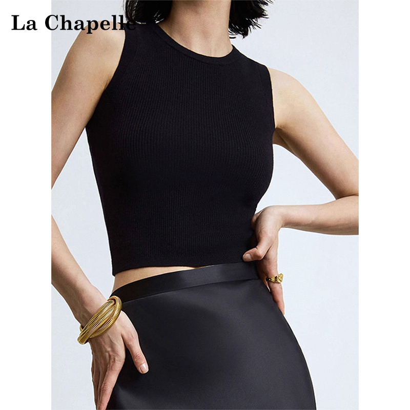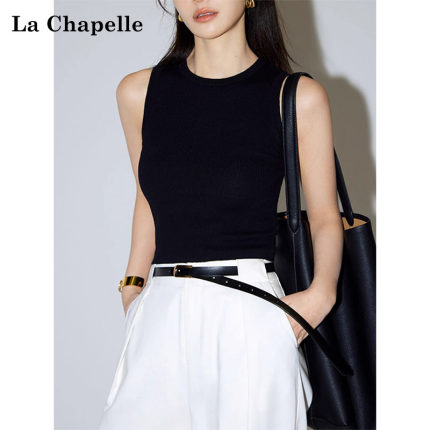 拉夏贝尔黑色半高领针织背心女秋季新款修身显瘦内搭打底衫上衣
