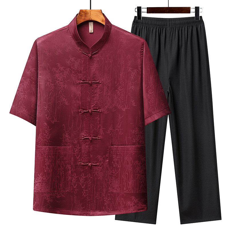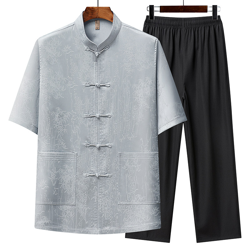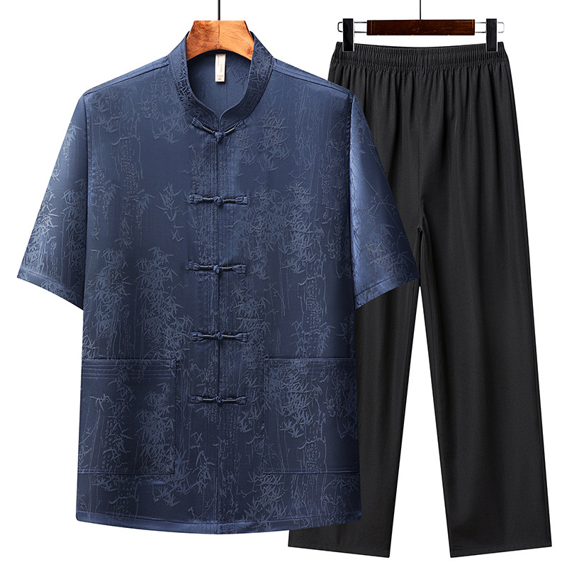 新款夏季爸爸短袖唐装中老年男士冰丝夏装中国风爷爷中式汉服套装