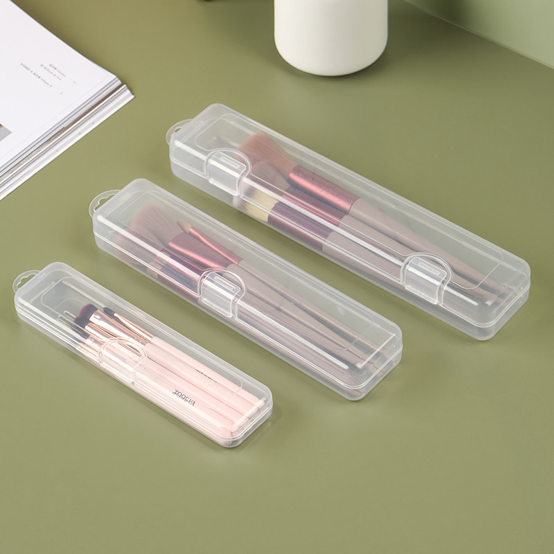便携化妆刷收纳盒带盖防尘透明桌面美容工具外出旅行眼影纹眉笔盒
