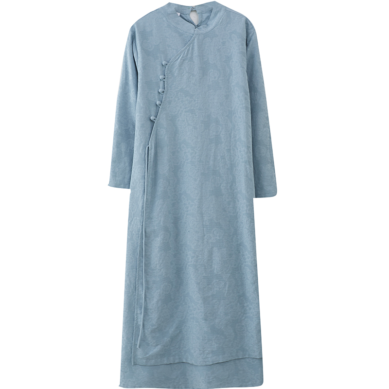 复古中式改良旗袍裙女2024年新款秋季文艺国风斜襟盘扣提花连衣裙