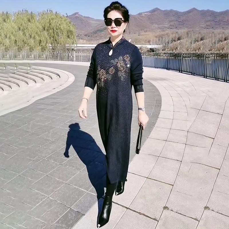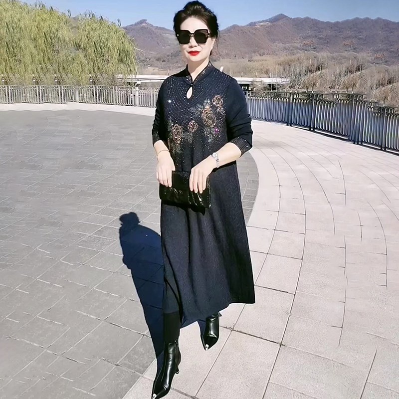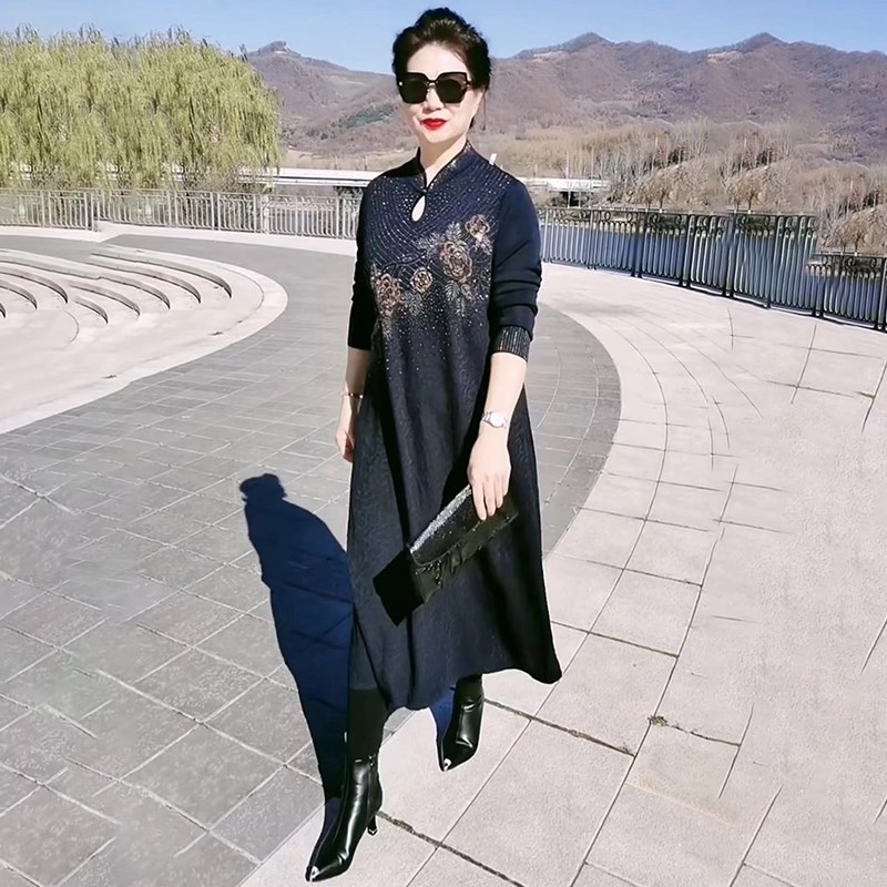 秋冬旗袍改良连衣裙羊毛针织保暖妈妈百搭显瘦中长款配大衣长裙子