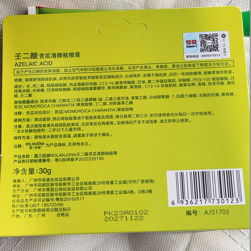 买2送1露兰姬娜二代(新一代)苦瓜痘克清祛痘膏舒缓痘印学生