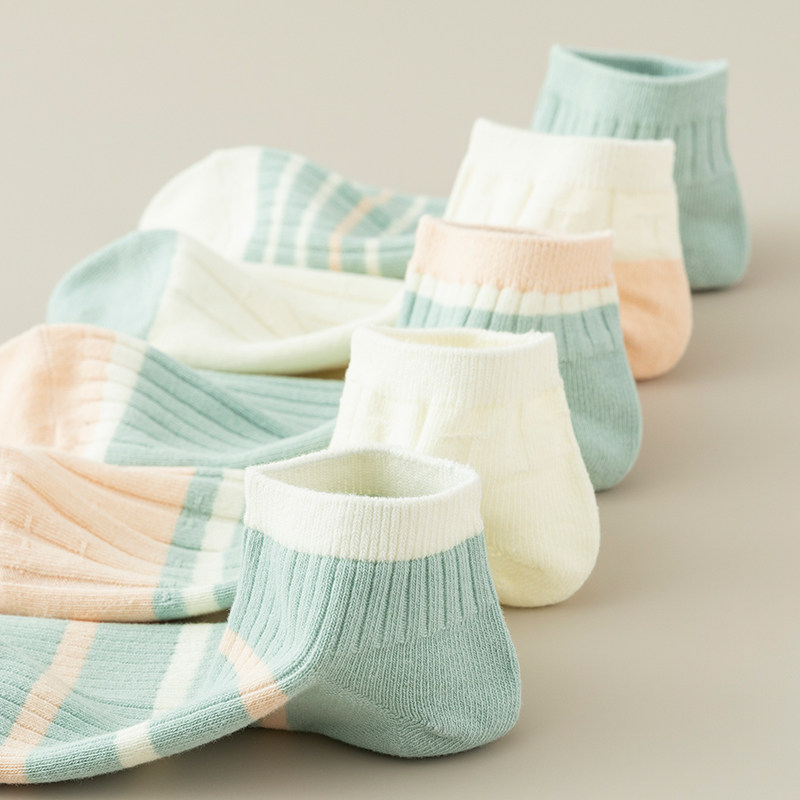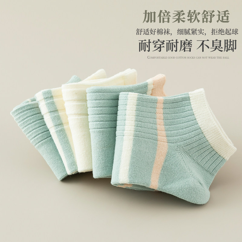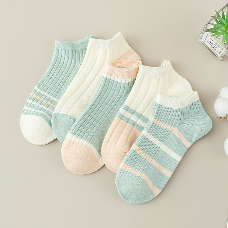 袜子女双针短袜夏季薄款日系可爱女生条纹短筒纯棉吸汗防臭船袜