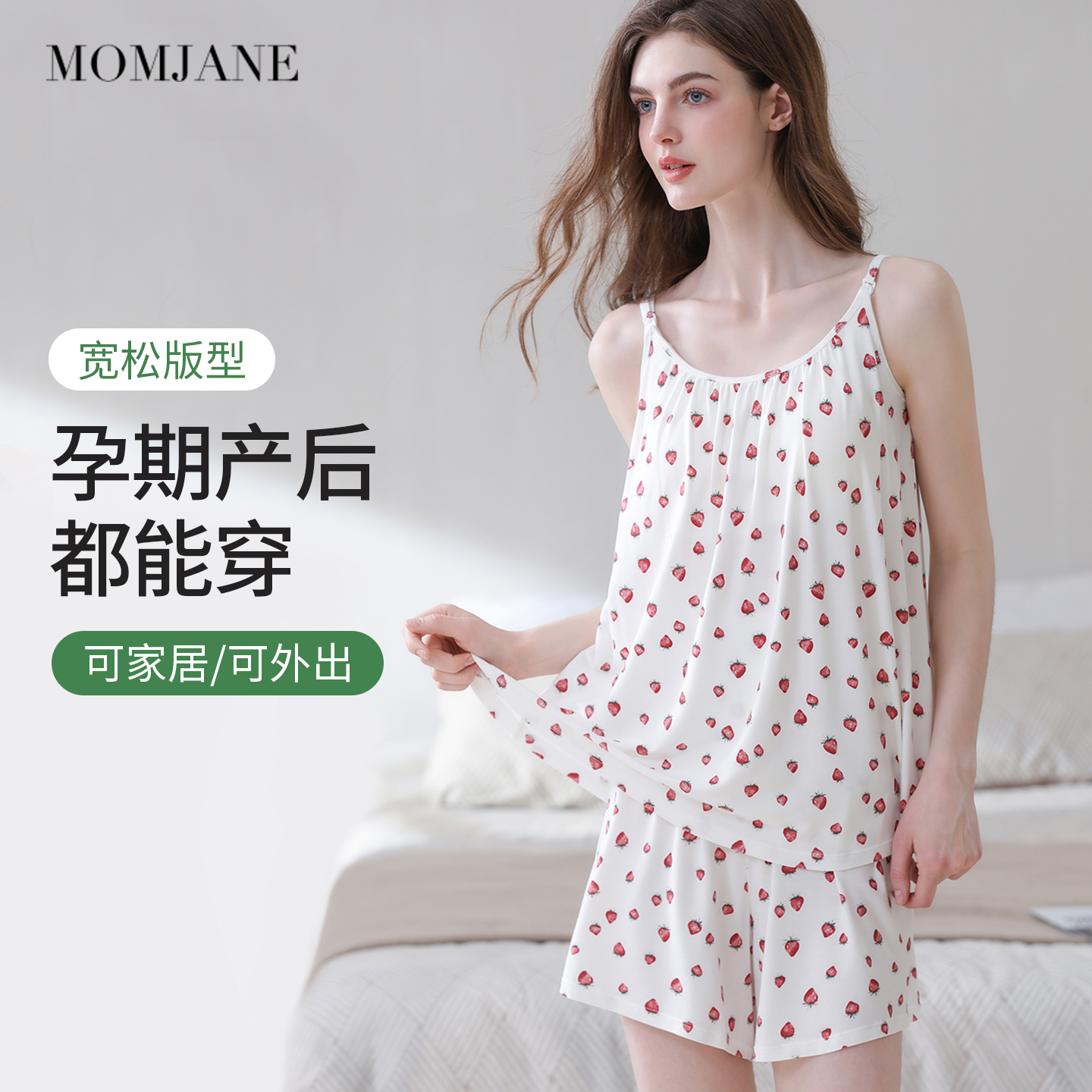 带胸垫哺乳吊带套装薄款孕妇睡衣