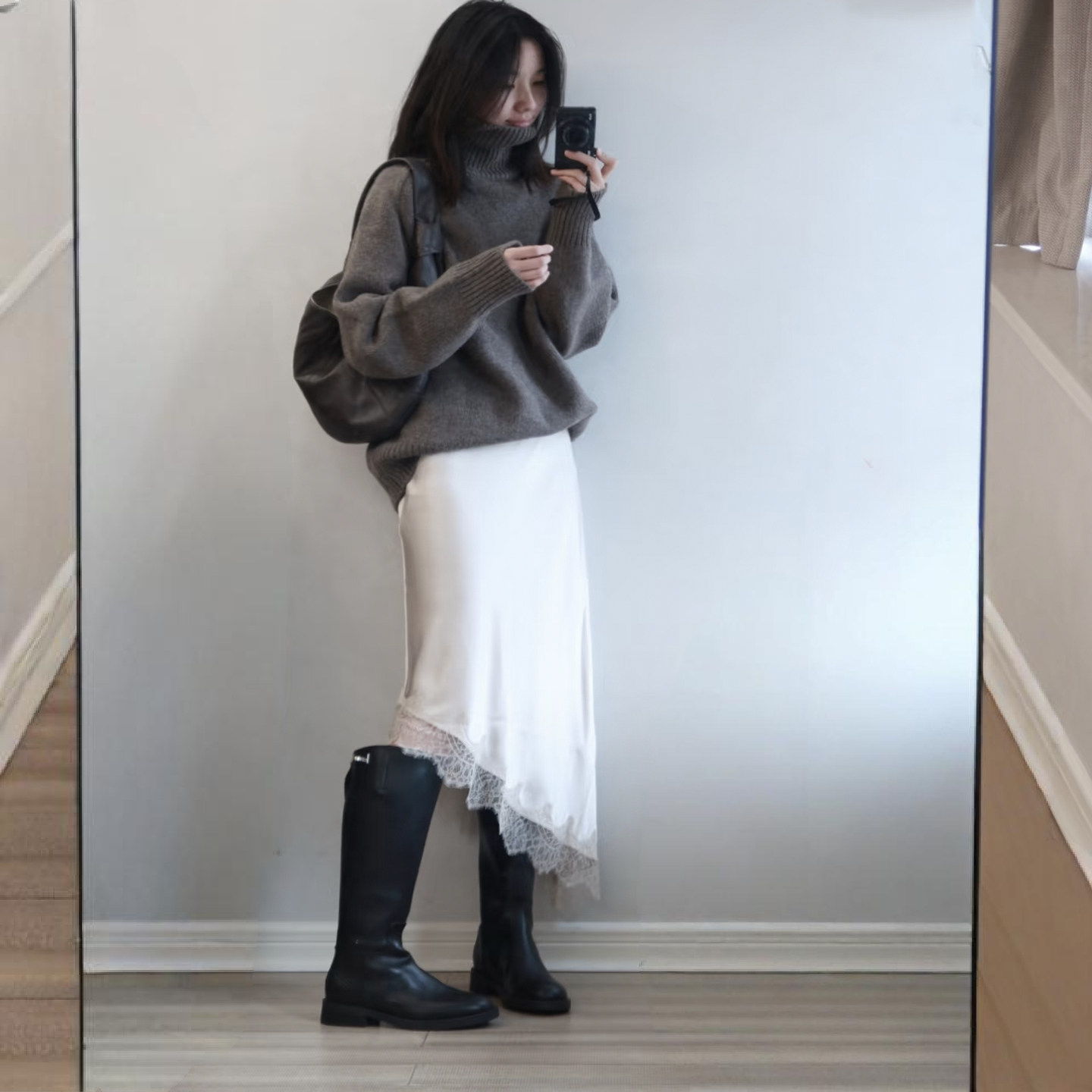 2025ZA秋季新品女装纯欲风纯色蕾丝拼接设计不规则半身裙 4772518