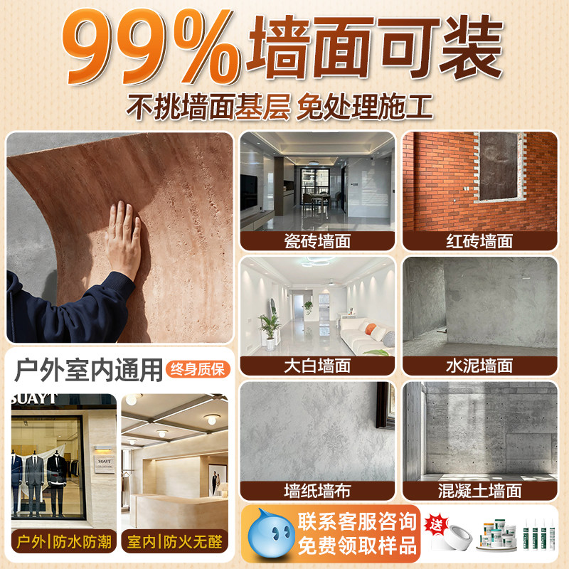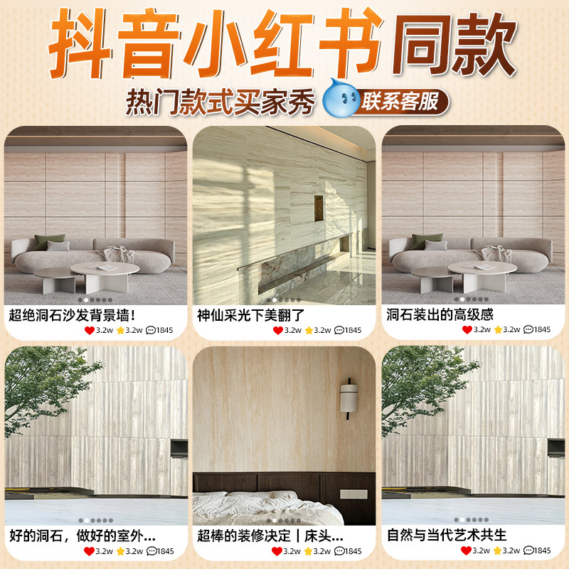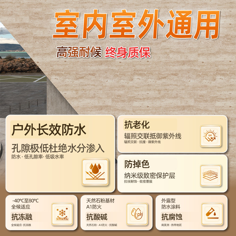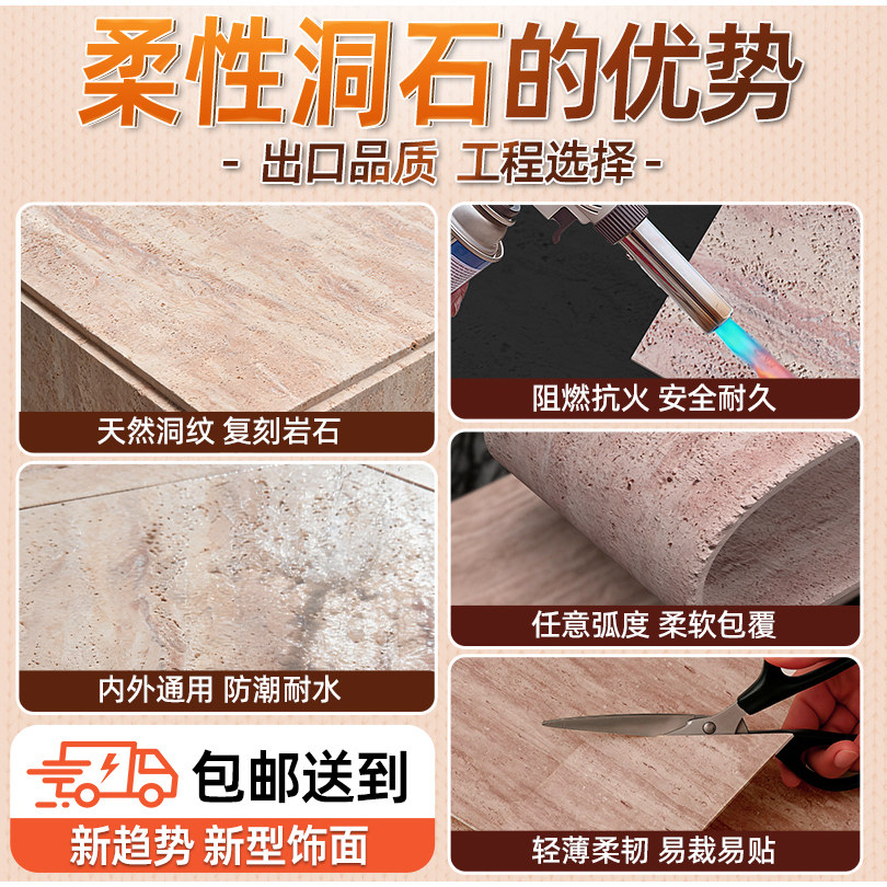 洞石饰面板岩板瓷砖外墙超薄柔性石材可弯曲3D打印洞石背景墙软瓷