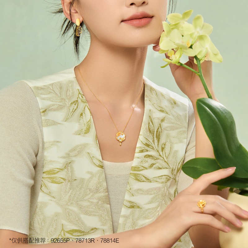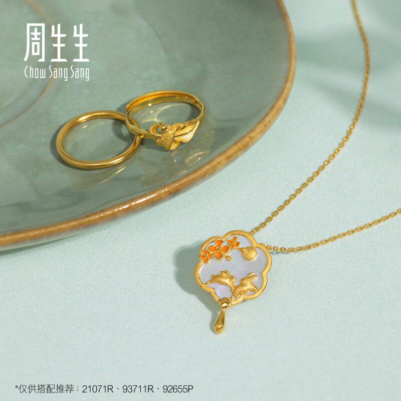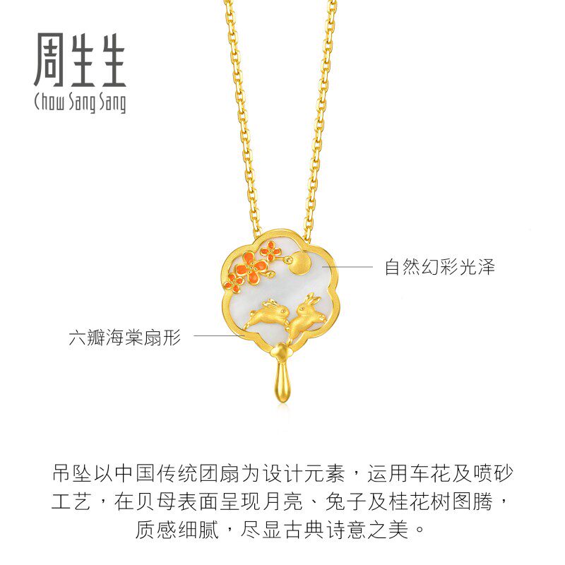 周生生官方文化祝福足金贝母桂花月兔海棠团扇黄金吊坠92655P