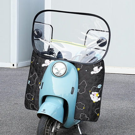 电动摩托车前挡风板踏板电瓶车防风被冬季高清透明挡雨罩四季通用
