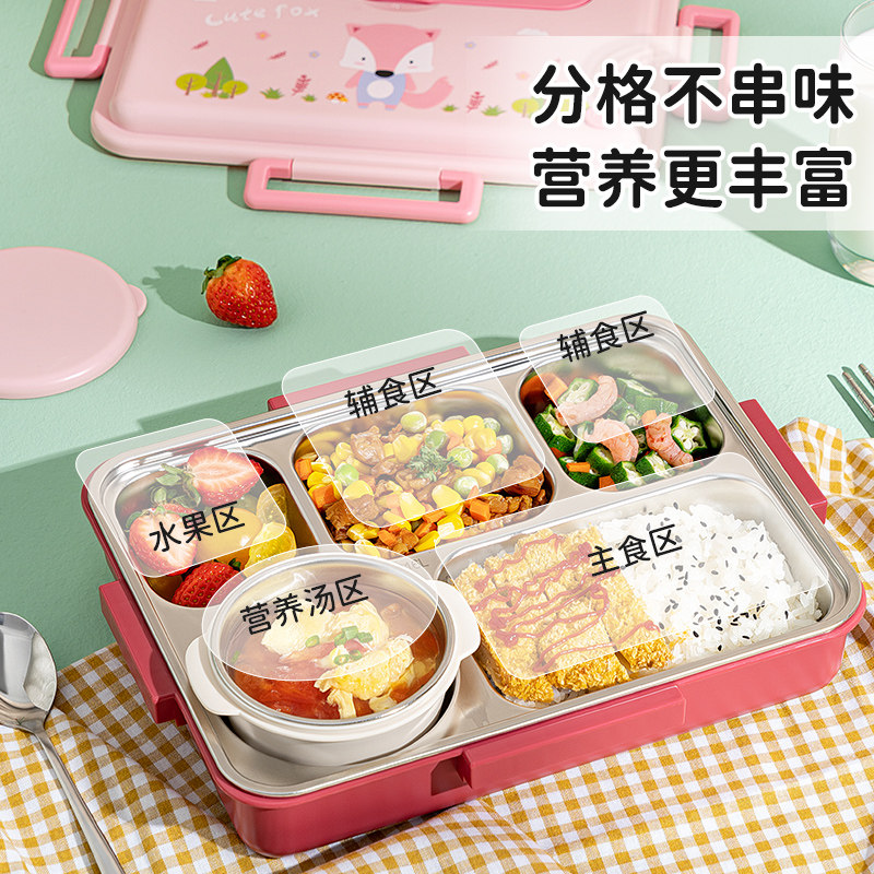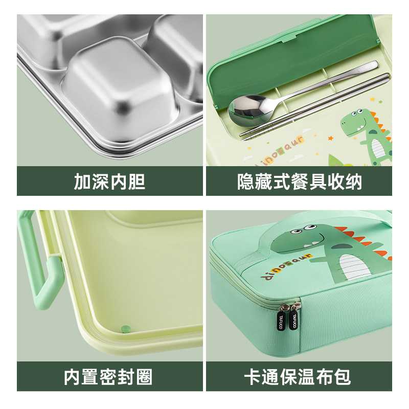日本泰福高卡通316L不锈钢饭盒便当盒小学生分格餐盘304儿童餐盒