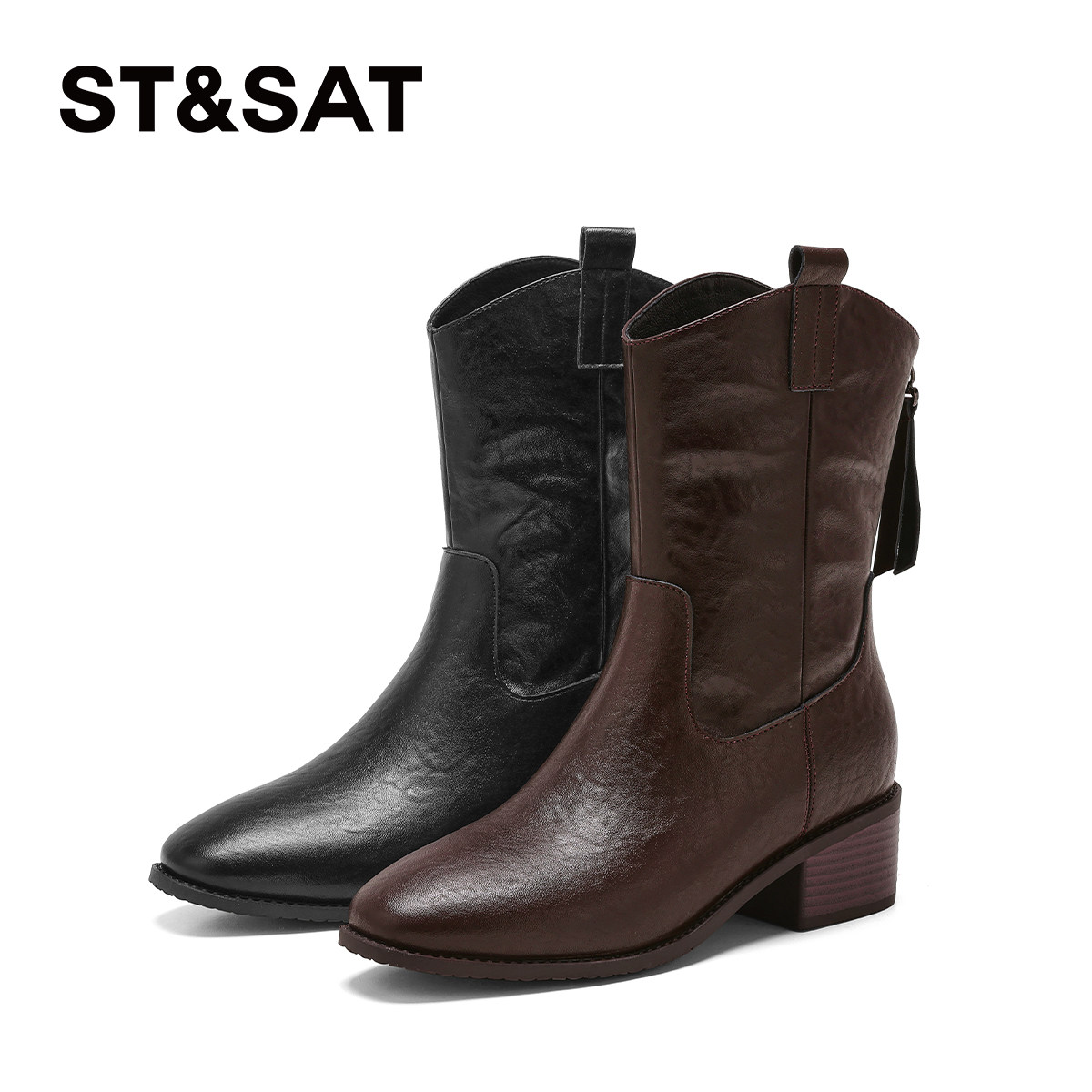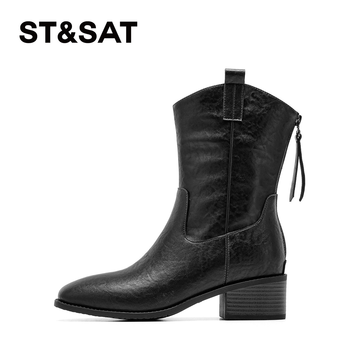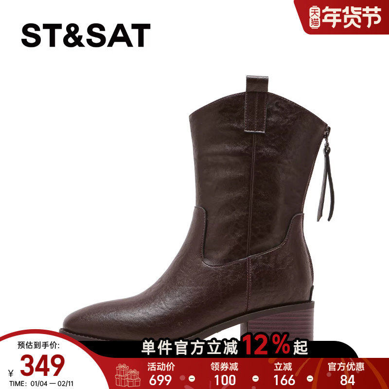 星期六复古马丁靴女2026新款春季粗跟后拉链时装增高美拉德堆堆靴