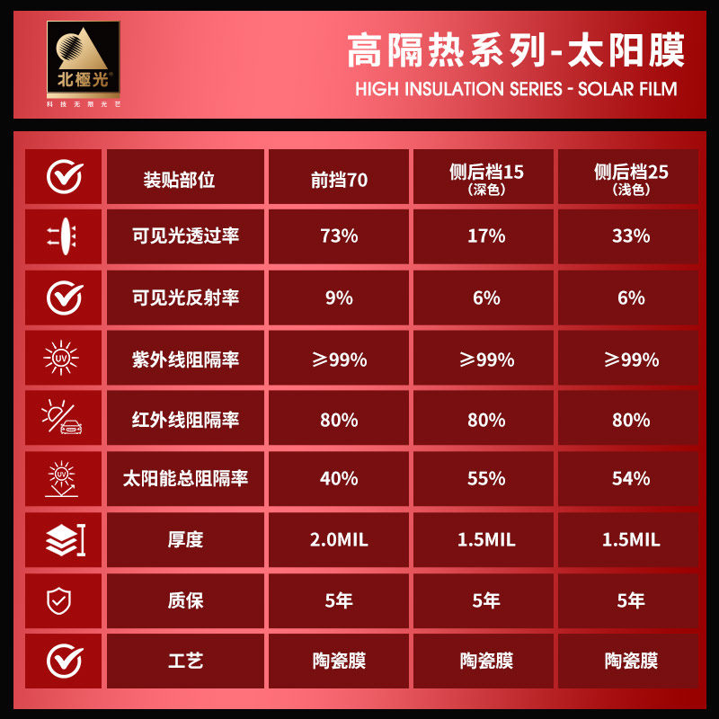 北极光汽车贴膜全车膜前挡风玻璃防晒隔热膜纳米陶瓷膜车窗太阳膜