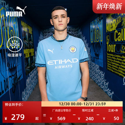 曼城主场球迷版球衣吸湿速干短袖T恤男子PUMA彪马运动上衣775075
