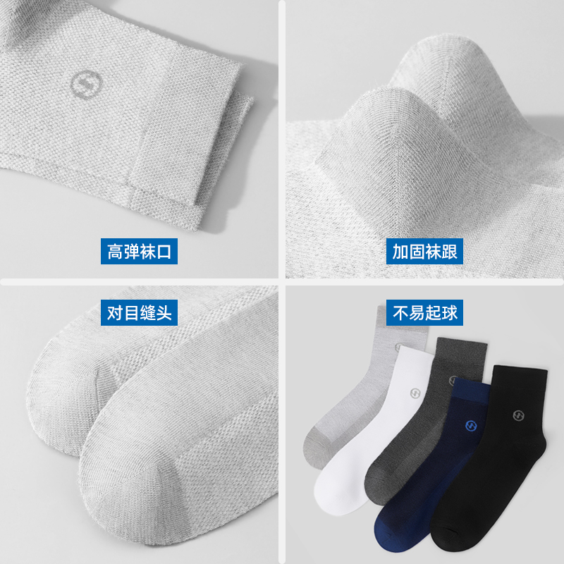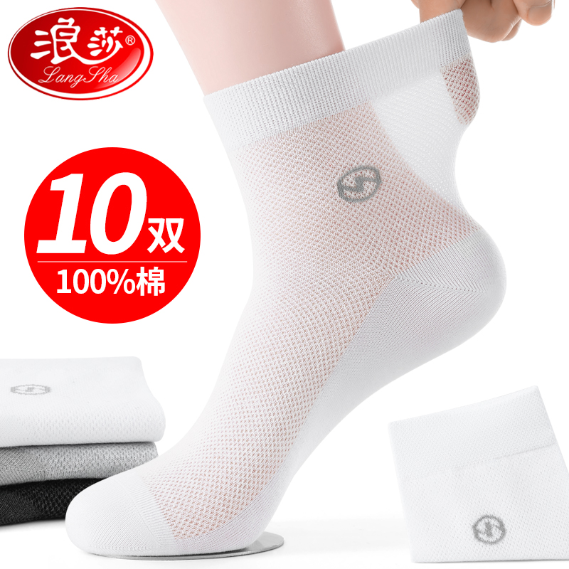 浪莎男袜子夏季薄款纯棉中筒防臭吸汗透气全棉袜夏天网眼男士长袜