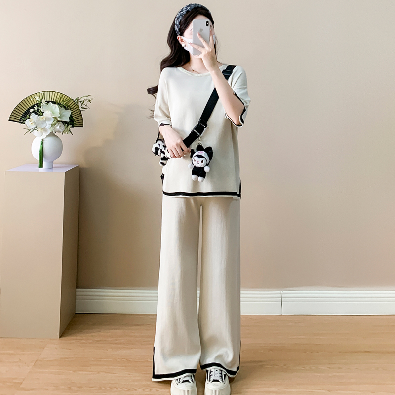 孕妇套装夏季2025新款黑色宽松显瘦时尚潮妈短袖上衣阔腿裤两件套