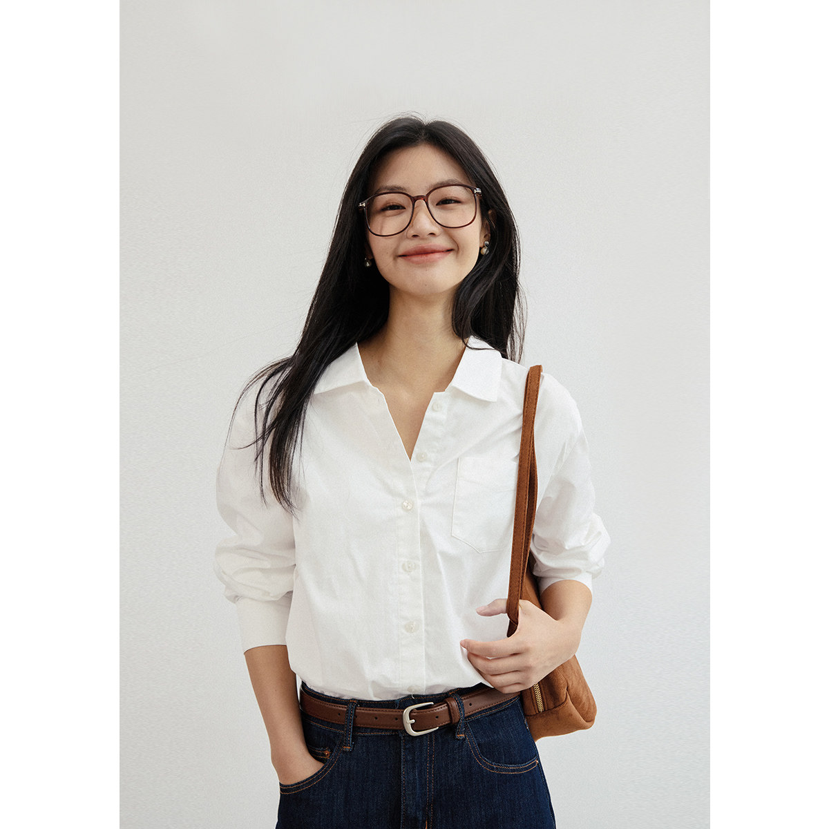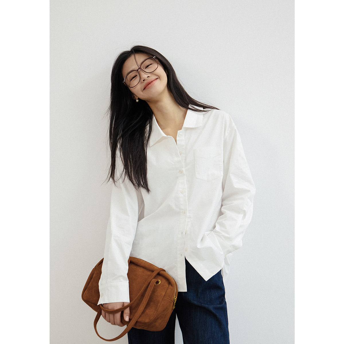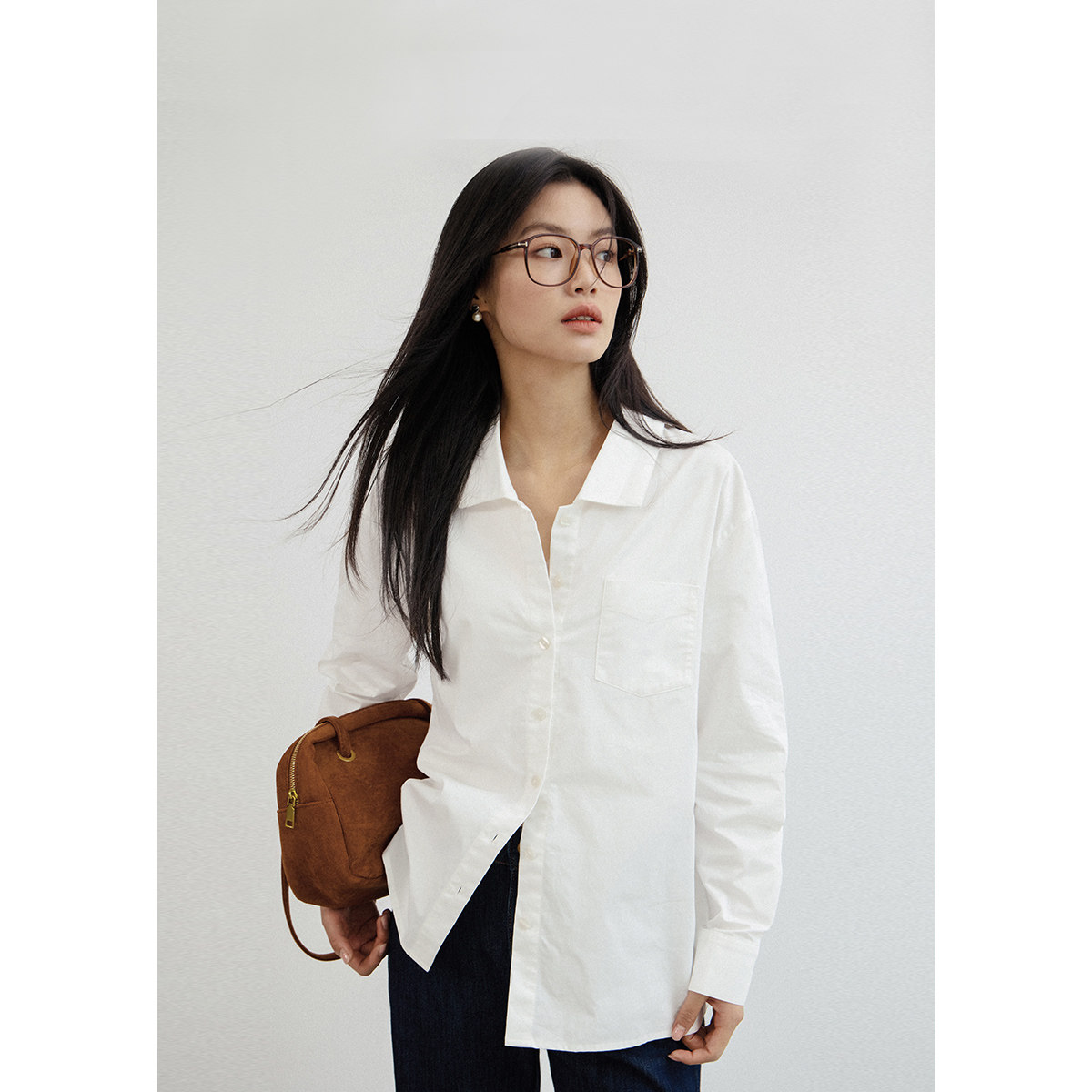 弥古白色纯棉内搭衬衫女上衣高级感2025秋冬打底长袖宽松法式衬衣