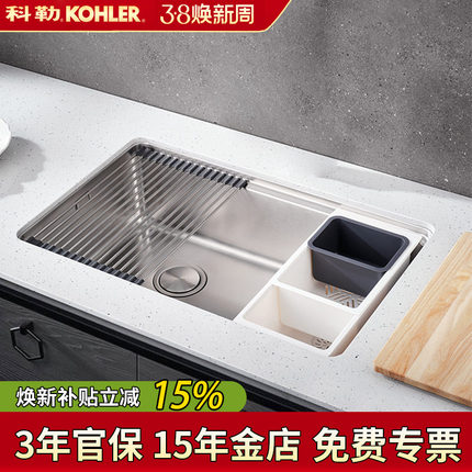 科勒厨房水槽普罗大单槽304不锈钢洗菜盆洗碗池洗碗池大单槽34451