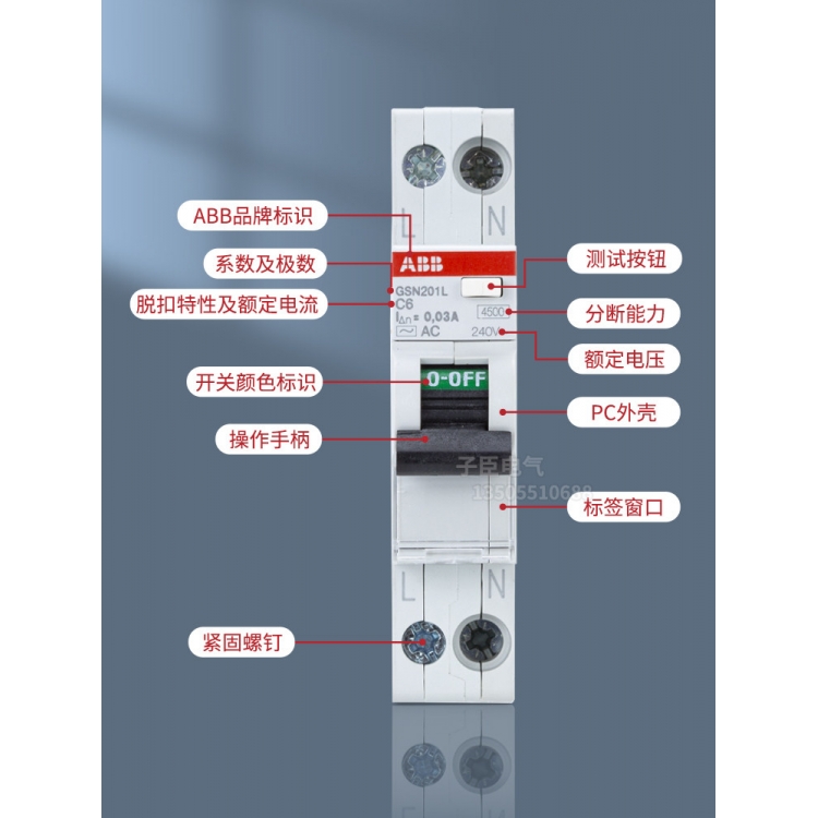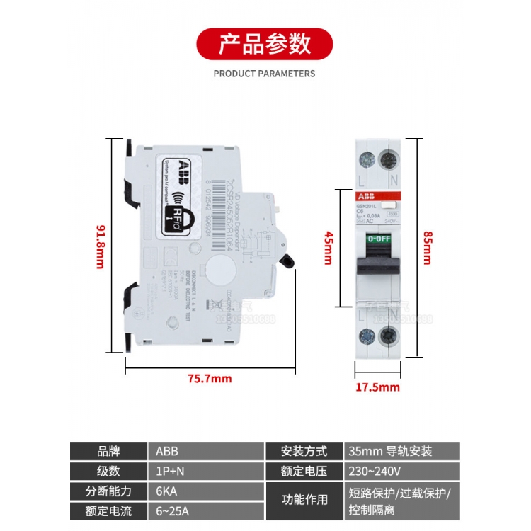 ABB单P空气开关SN201L小型断路器40a过载短路保护器1P+N双进双出