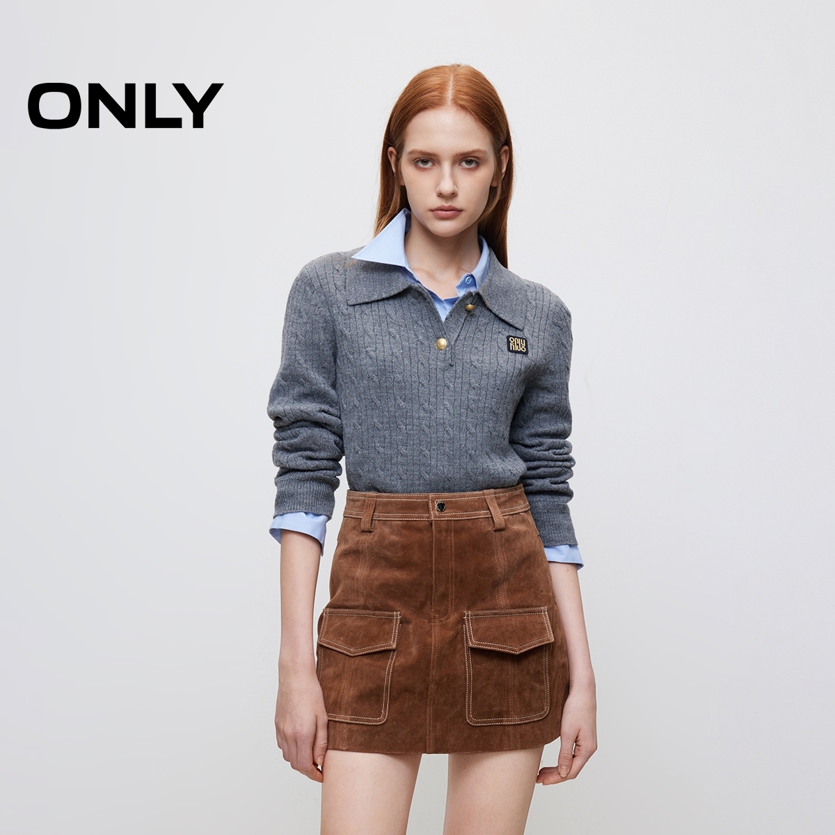 ONLY冬季复古时髦A字口袋短裙皮裙半身裙女|12439M007