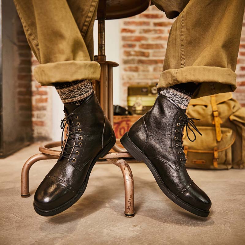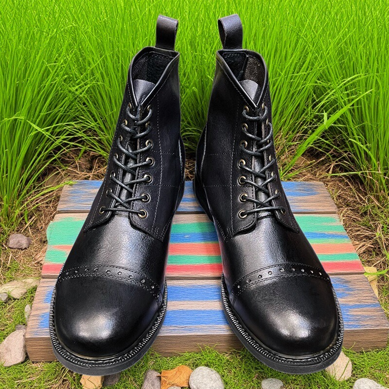 布洛克大头层牛皮靴阿美咔叽百搭