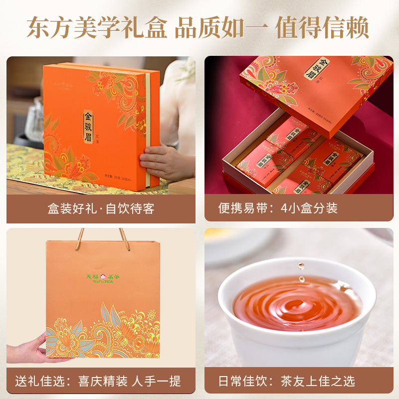 天福茗茶金骏眉特级武夷山小叶种红茶礼盒装220G