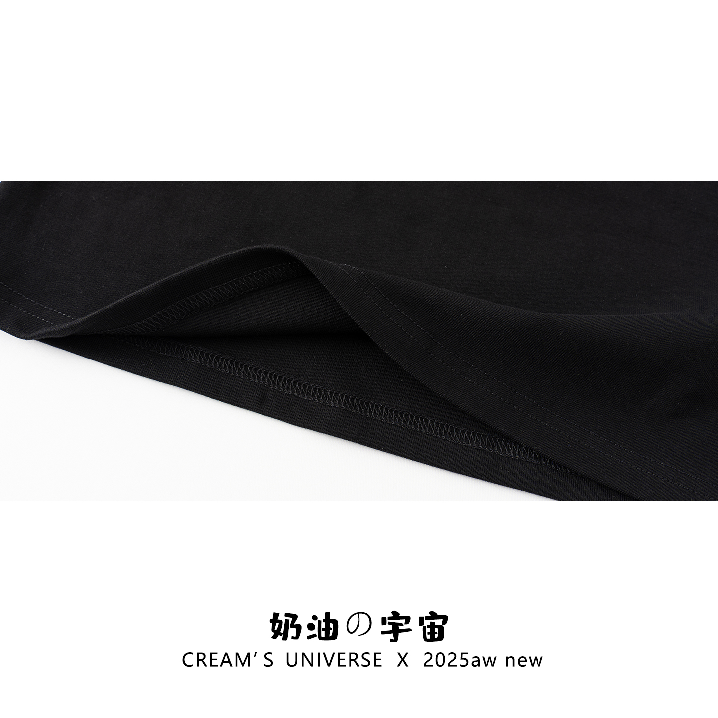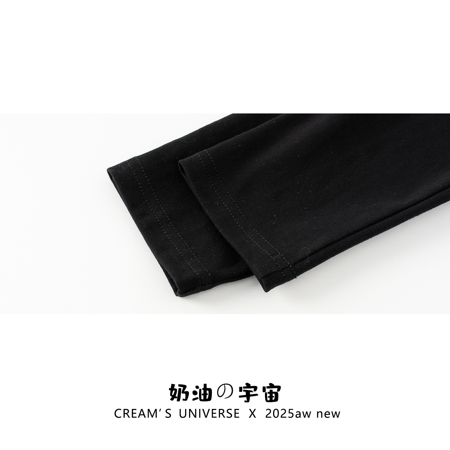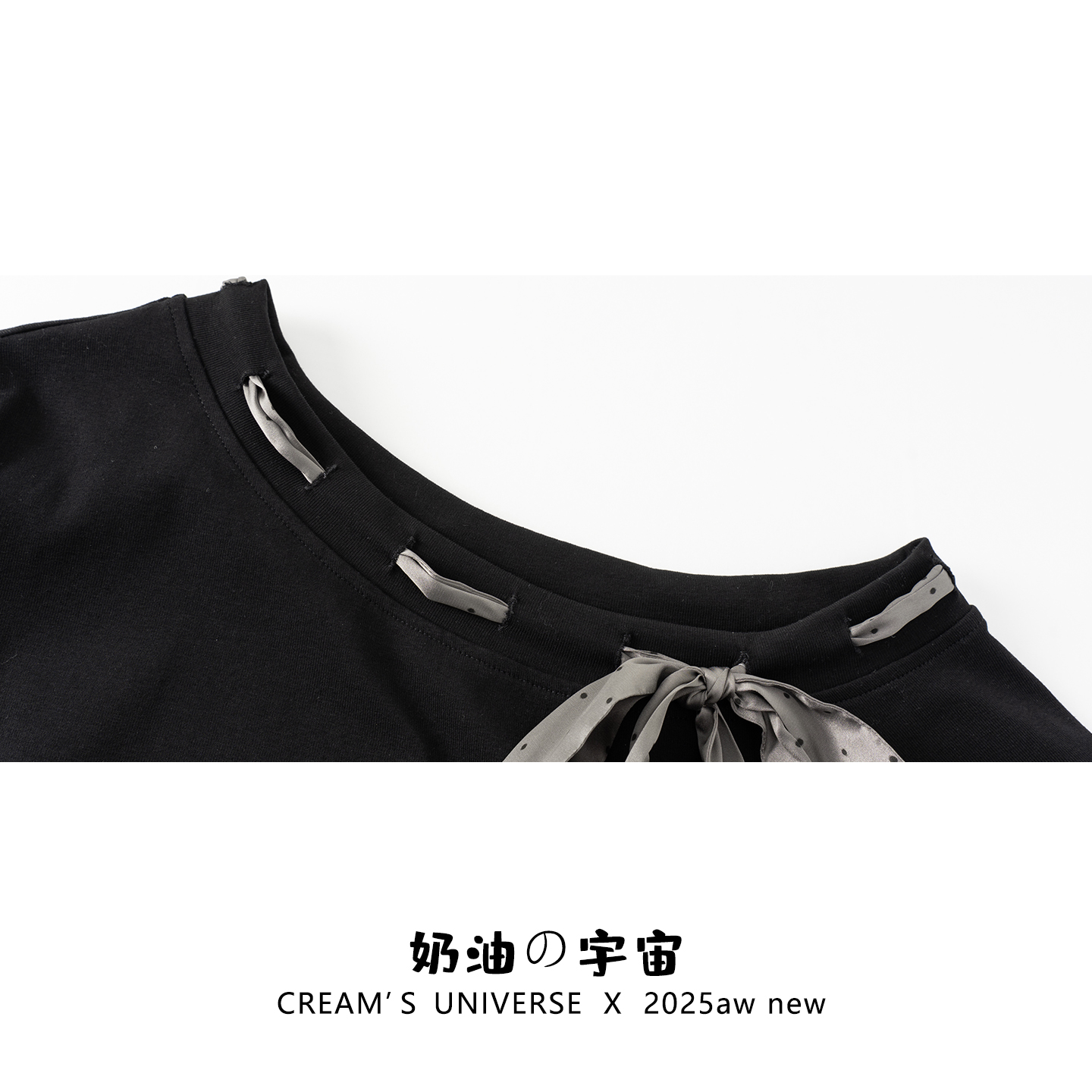 奶油的宇宙 波点绑带黑色斜肩长袖T恤女纯欲气质修身早秋露肩上衣