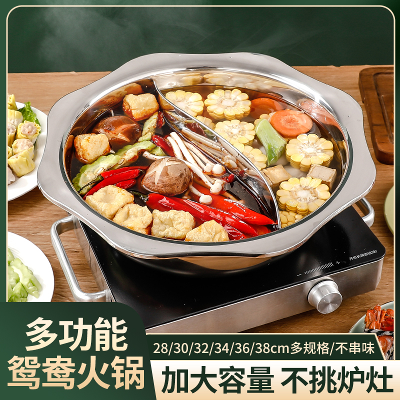 鸳鸯锅电磁炉专用不锈钢鸳鸯锅火锅家用火锅盆加厚火锅锅商用火锅