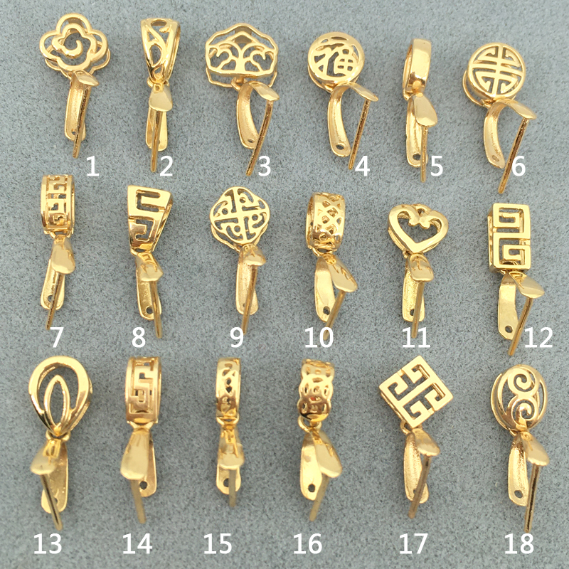 18k金扣头玉坠吊坠扣子万能大号加厚瓜子扣翡翠扣au750卡项链扣头