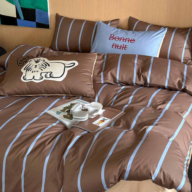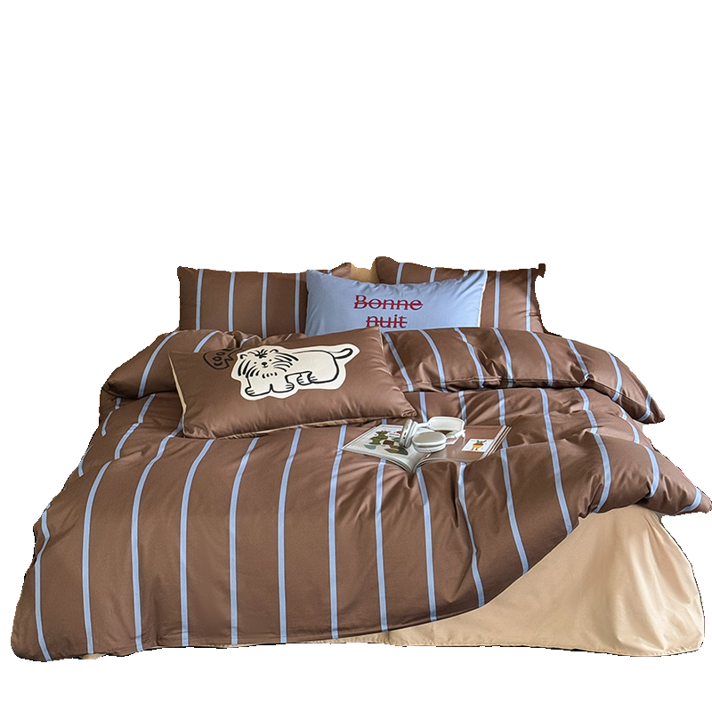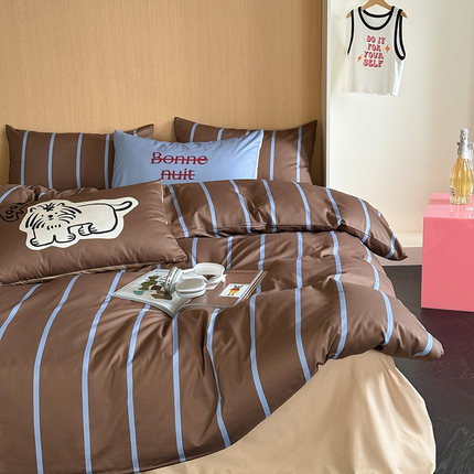美拉德系小清新纯棉床上四件套1.5m1.8米床笠被套床单全棉三件套