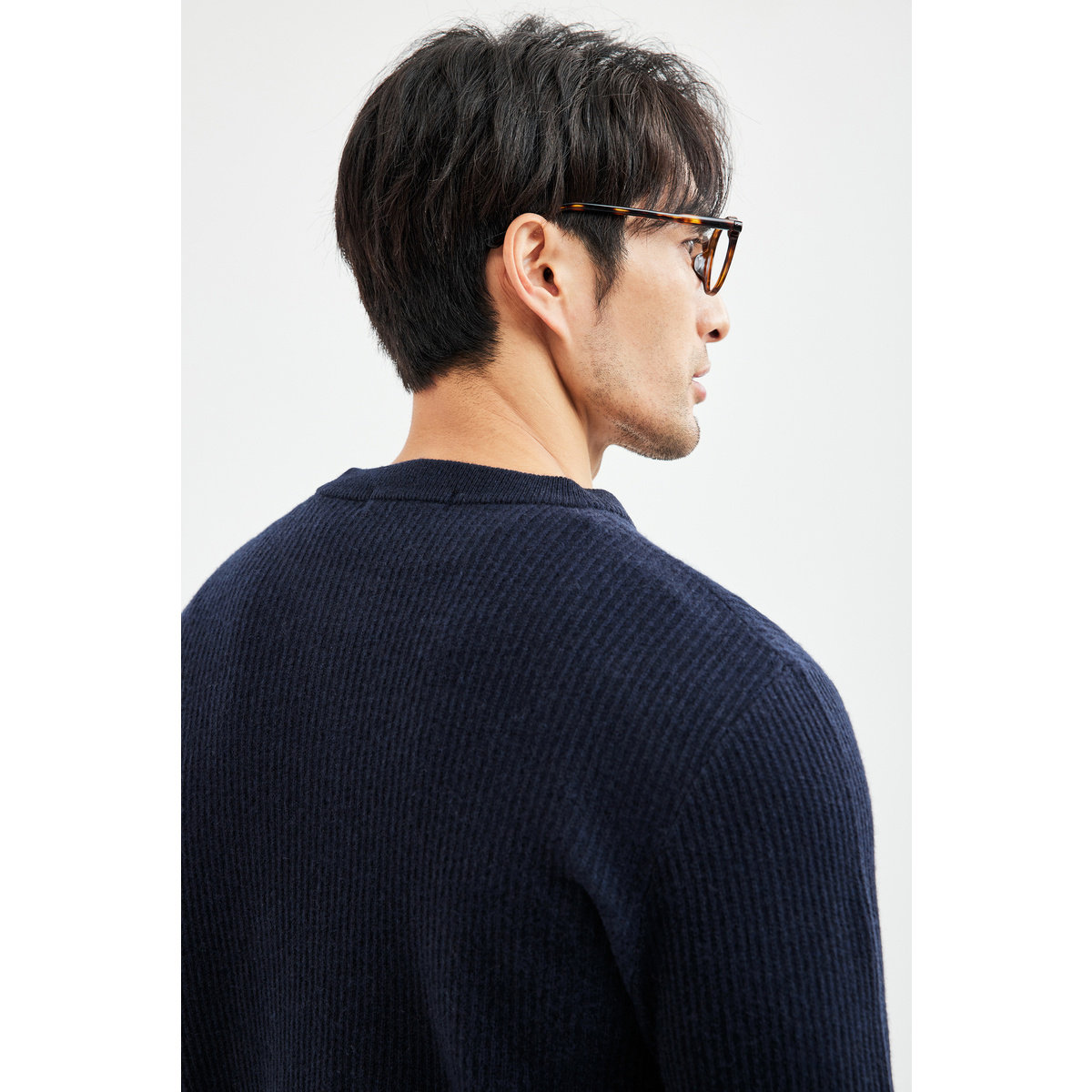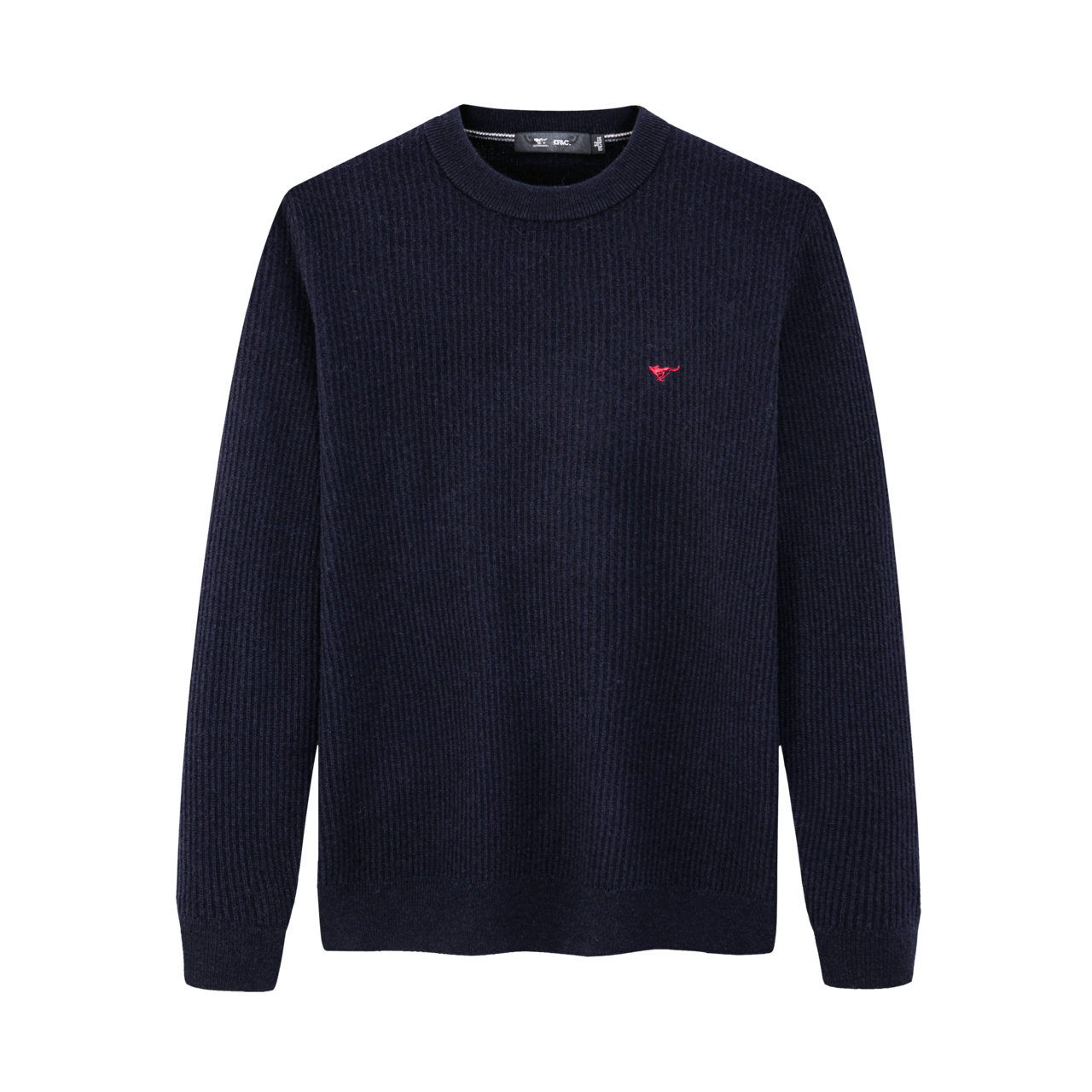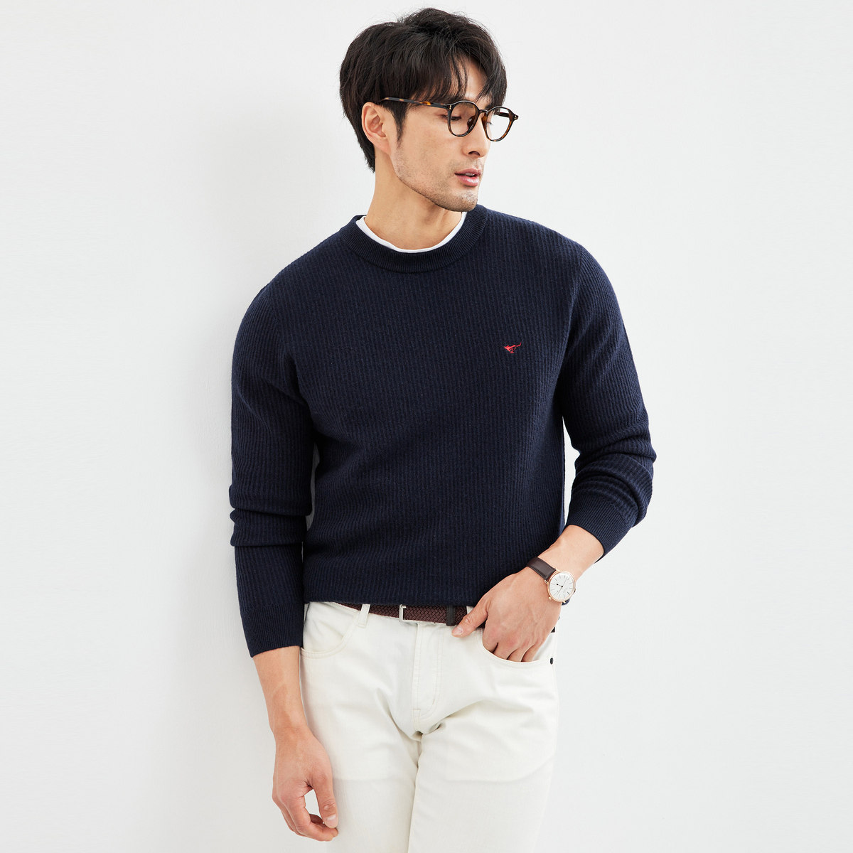 七匹狼官方正品羊绒净色竖条针织新款圆领薄毛衫舒适保暖羊毛衣男