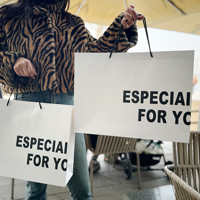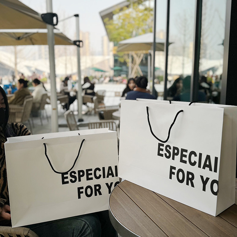 白卡纸袋服装店手提袋高端礼品袋购物袋女装店包装袋子高级感字母