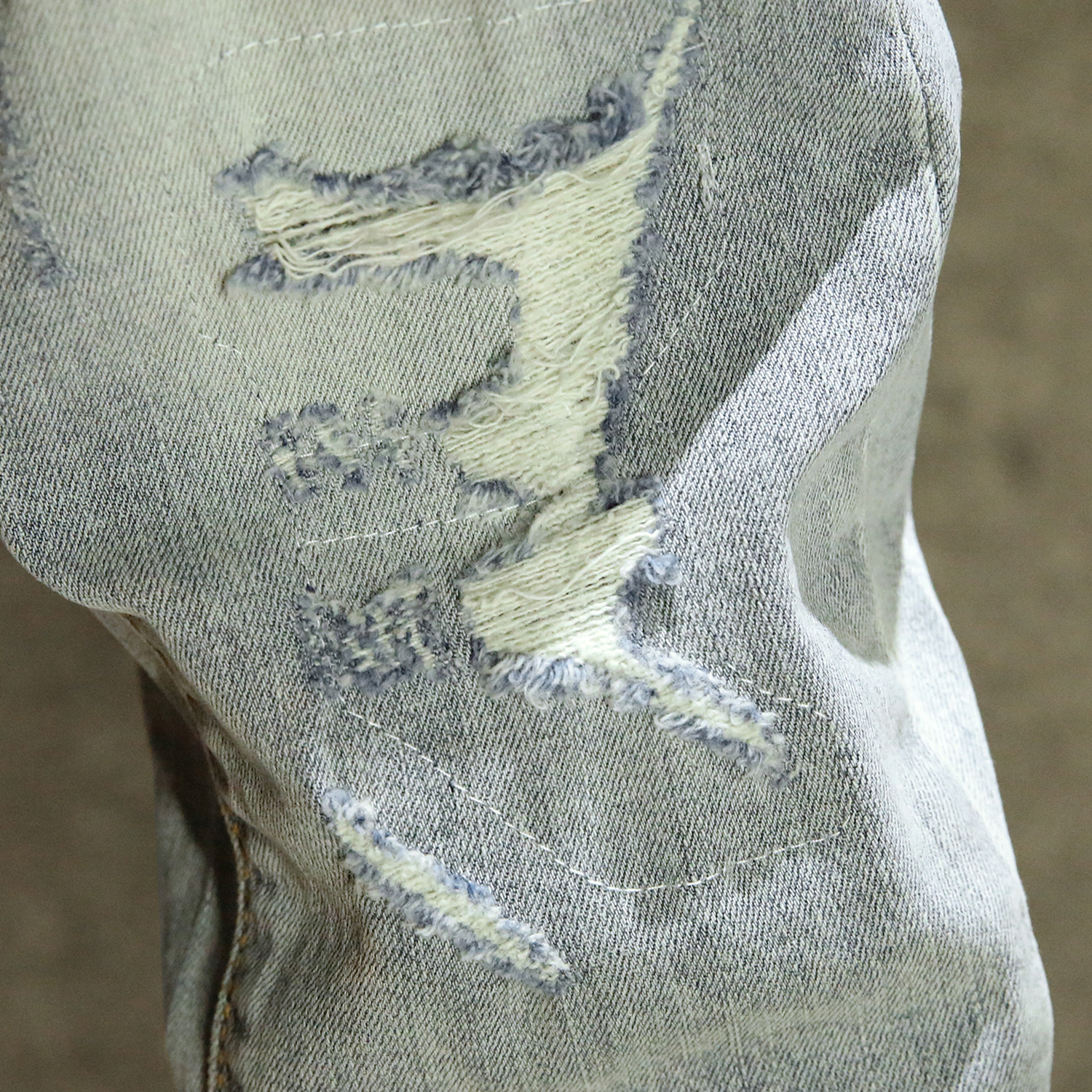 浅色ins潮牌牛仔裤男款夏季修身小脚裤2025时尚潮流破洞补丁长裤