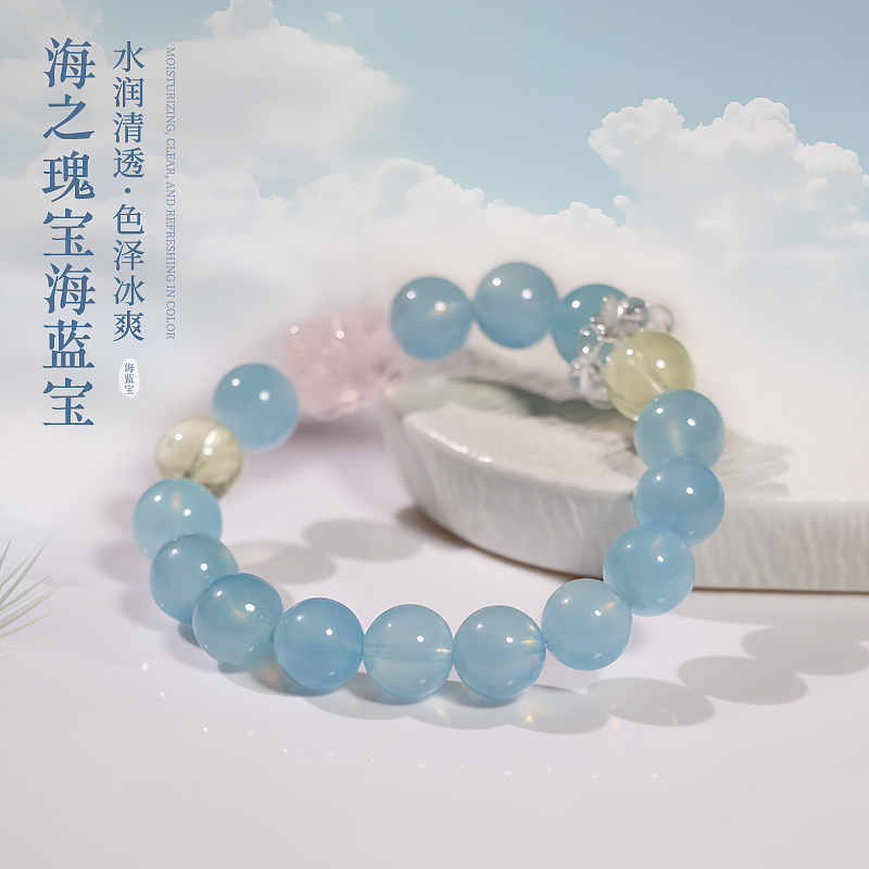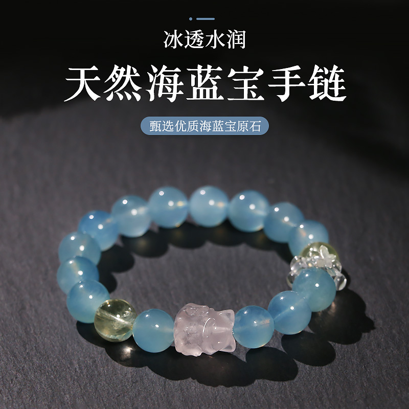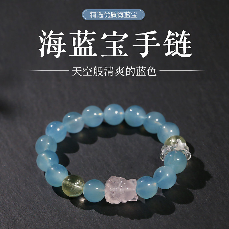 天然海蓝宝手串女黄水晶转运珠手链粉晶九尾狐狸冰种海蓝宝石饰品