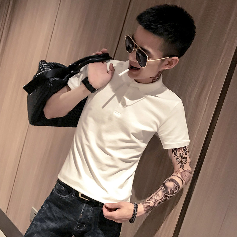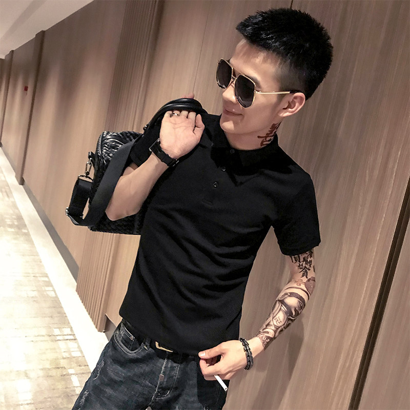 男士短袖t恤韩版潮流修身翻领polo衫夏季精神小伙男生纯棉半袖T恤
