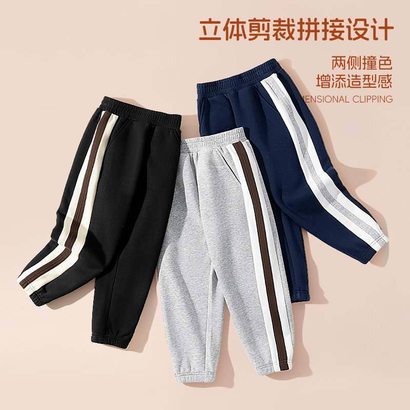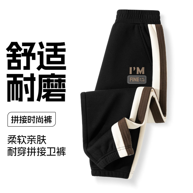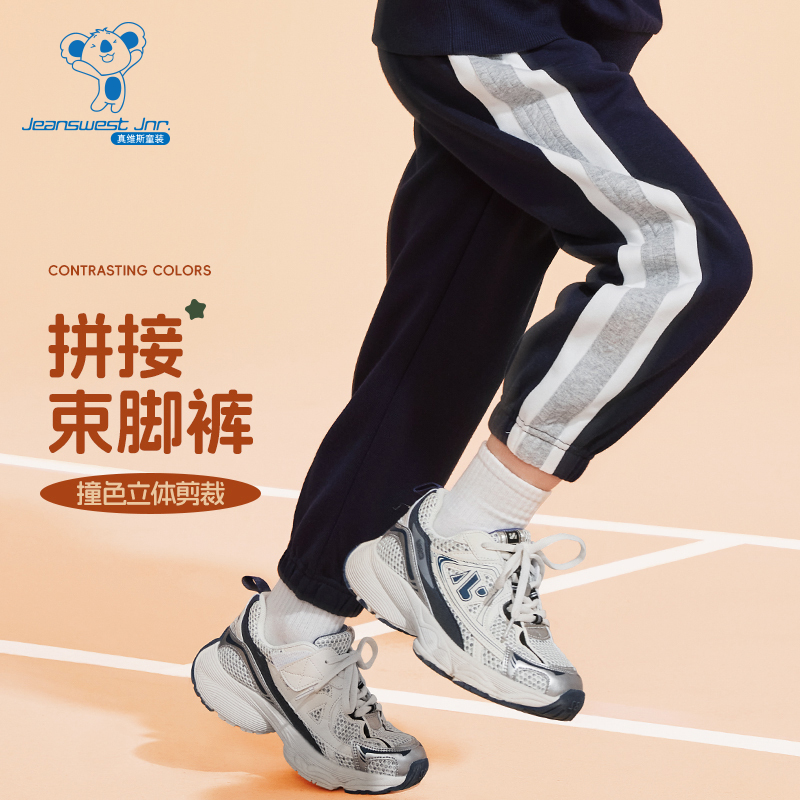 JU真维斯2025秋季新款童装男童拼接卫裤长裤束脚