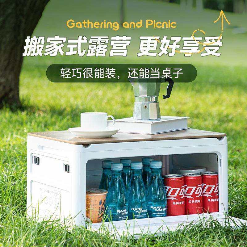 汽车塑料露营折叠收纳箱木盖车载后备箱野餐整理箱杂物箱子储物箱
